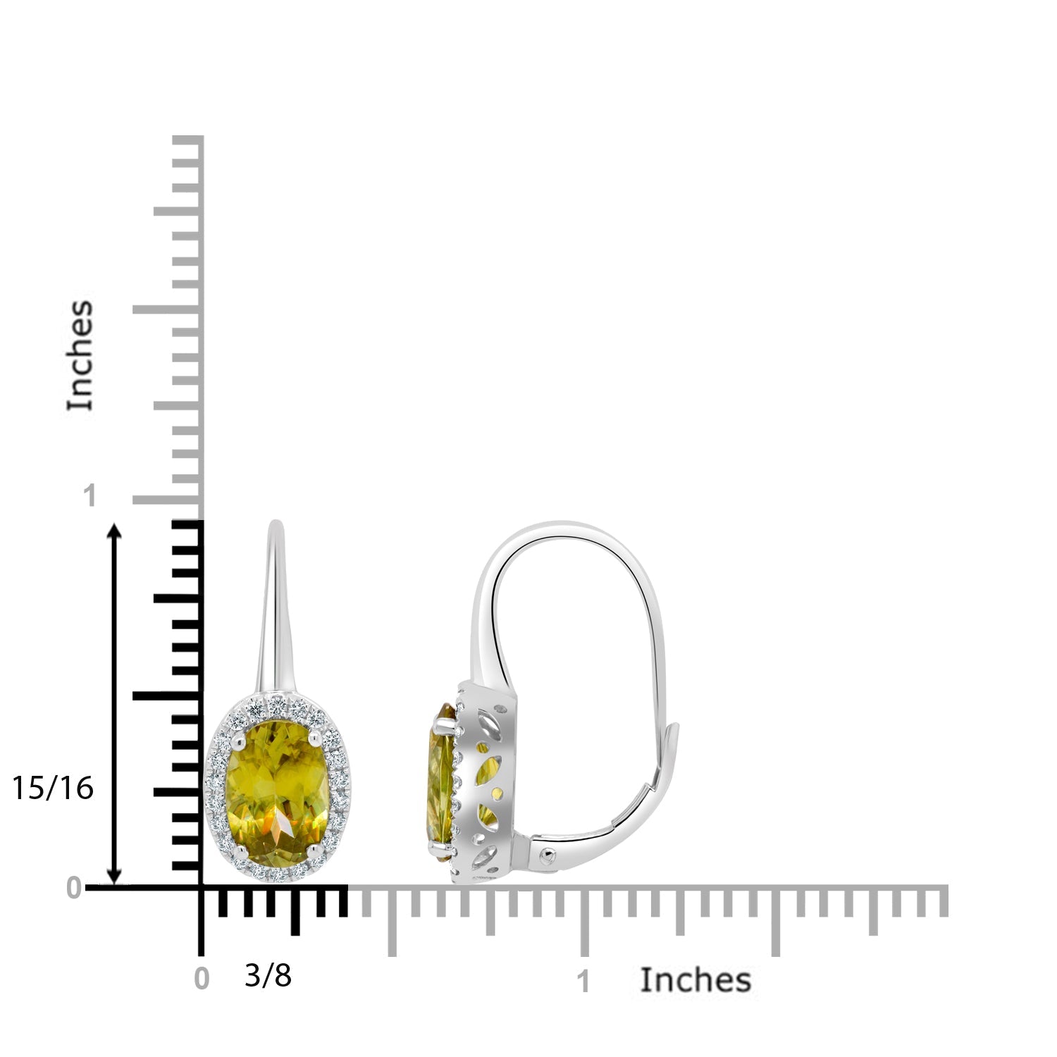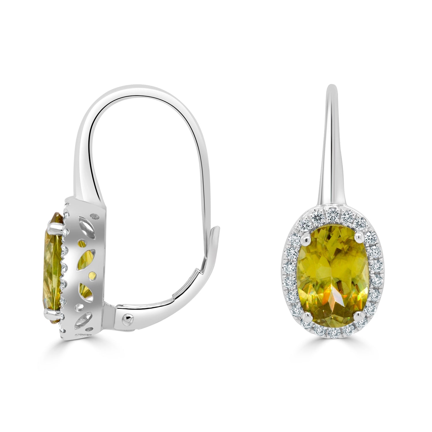 Crafted with 14K white gold and set with an oval-cut Sphene and round Diamonds this charming pair of earrings is unforgettable.
