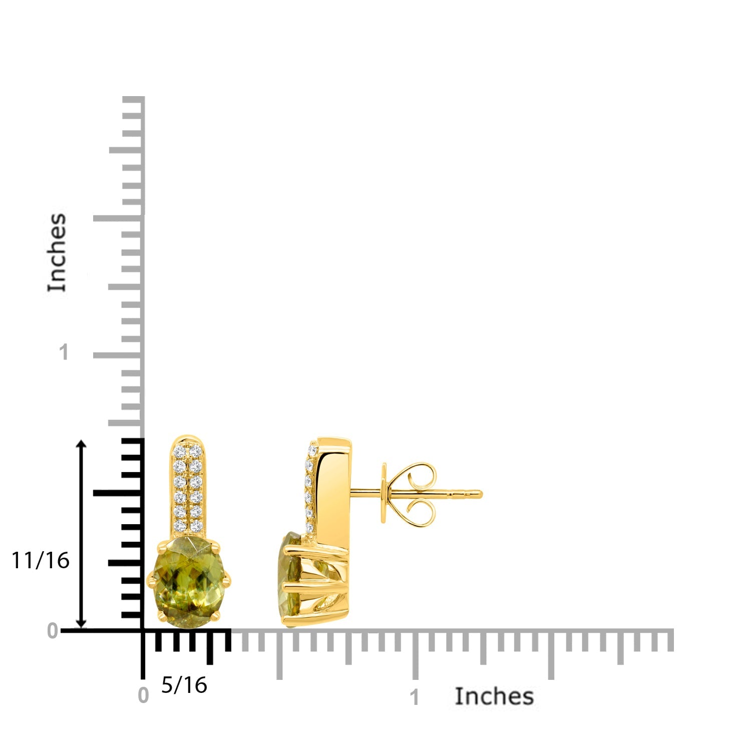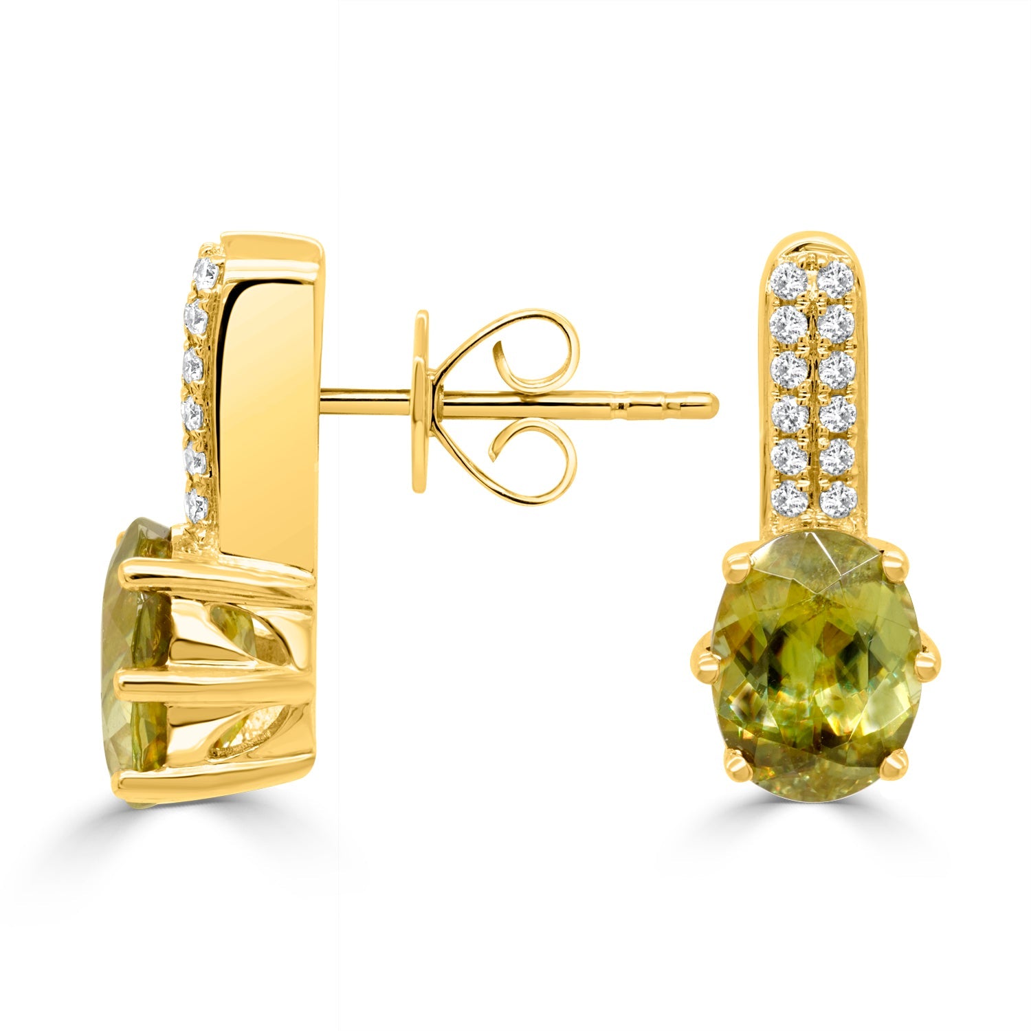 Crafted of 14k yellow gold, this pair of earrings are treasured for its natural beauty and radiance. The oval cut Sphene and round-cut Diamond lend a mesmerizing brilliance to these earrings. A beautiful earring to make a dazzling style statement.