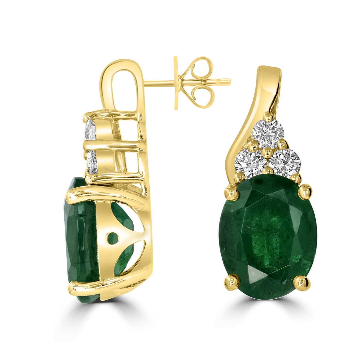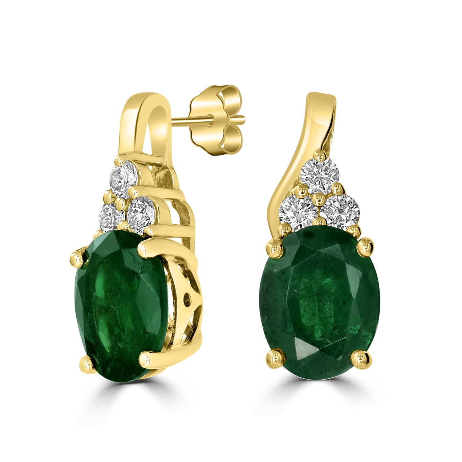Fashioned from 14k yellow gold, these stylish earrings are set with an oval-cut Emerald and round Diamonds. Perfect for formal parties or dinner with the family.
