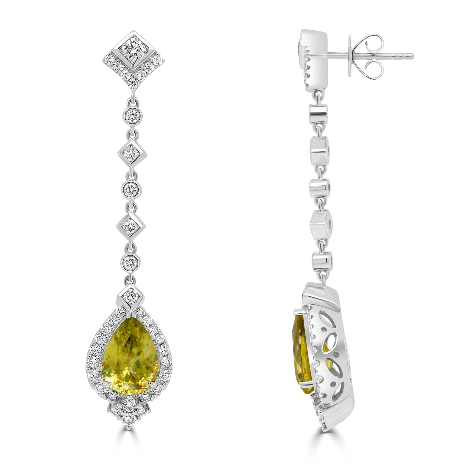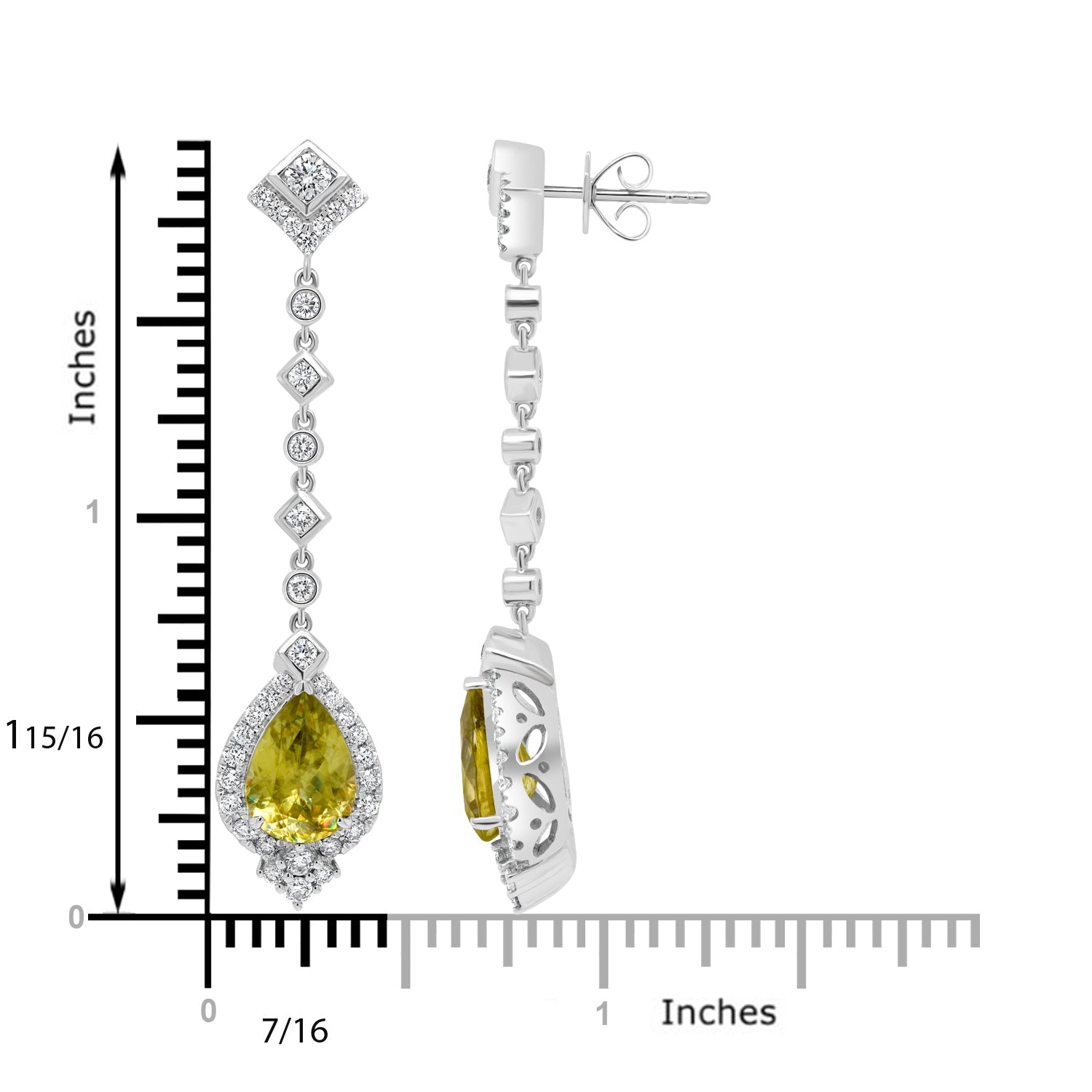 This pair of earrings is intricately set with pear-cut Sphene and round Diamonds. Crafted from 14K white gold, they are perfect for every occasion.