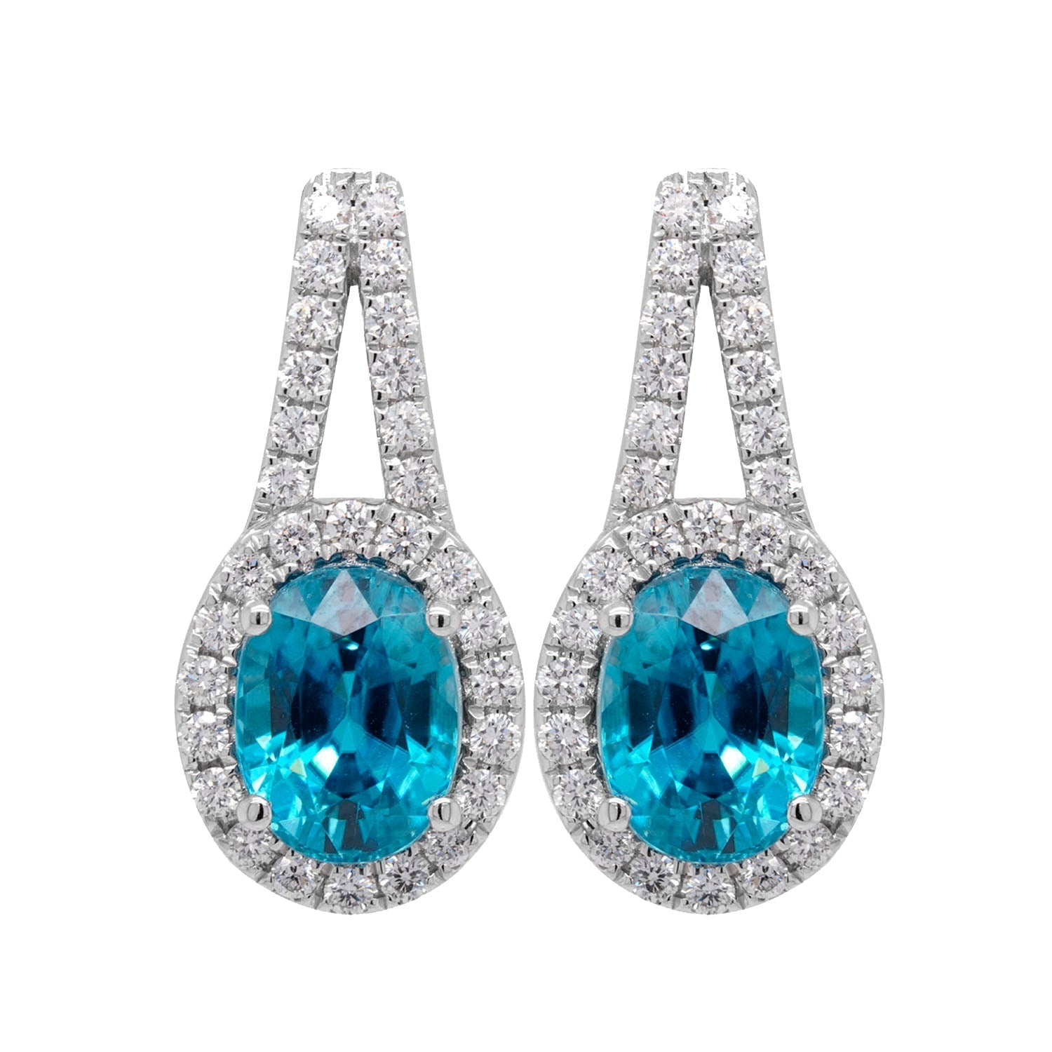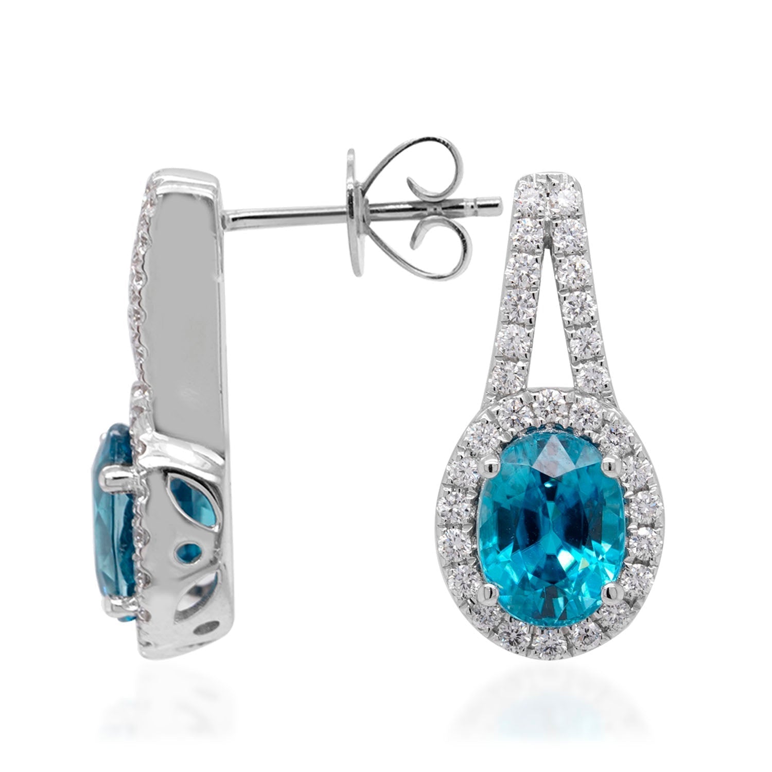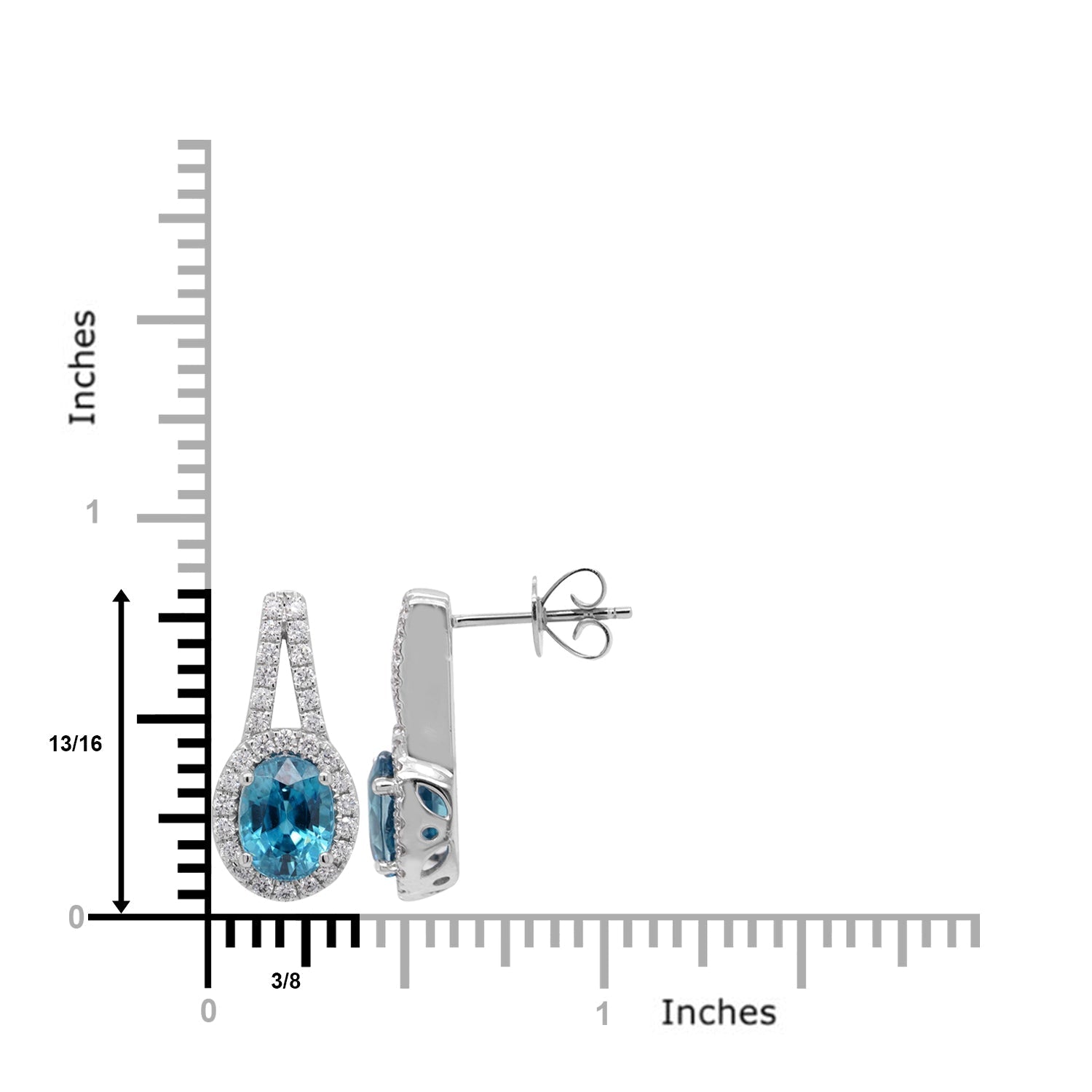 5.11ct Blue Zircon Earring With 0.55tct Diamonds Set In 14kt White Gold