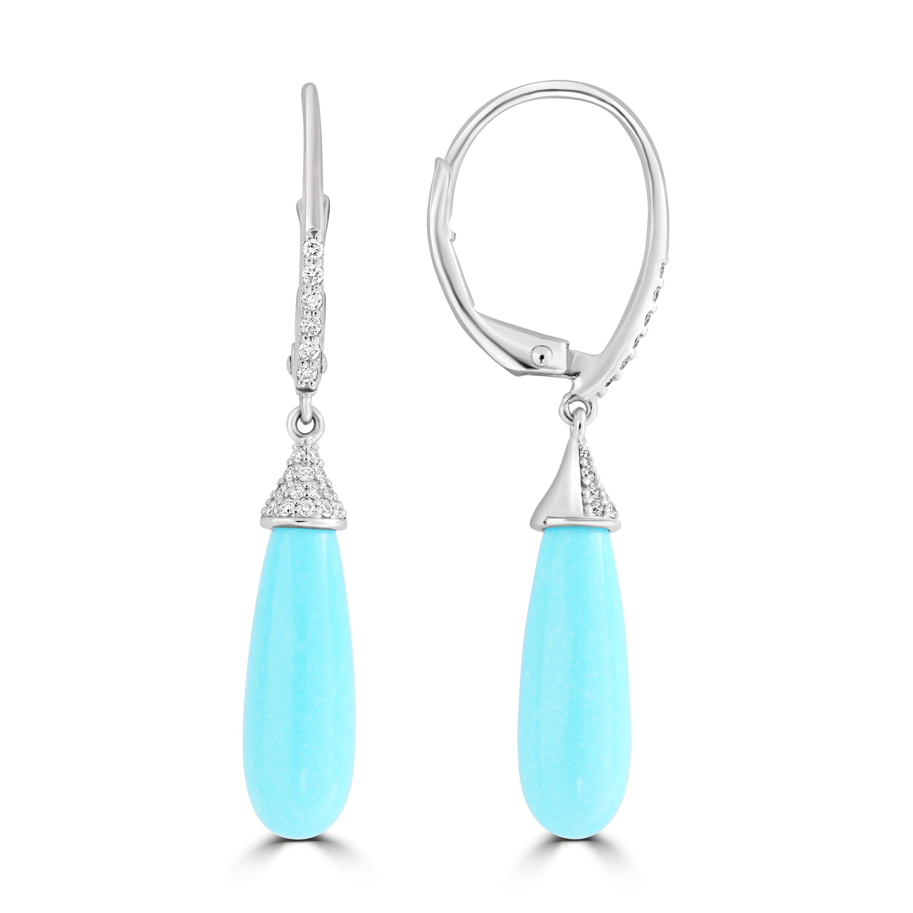 "5.94ct Turquoise Earrings with 0.122tct Diamond set in 14K White Gold"