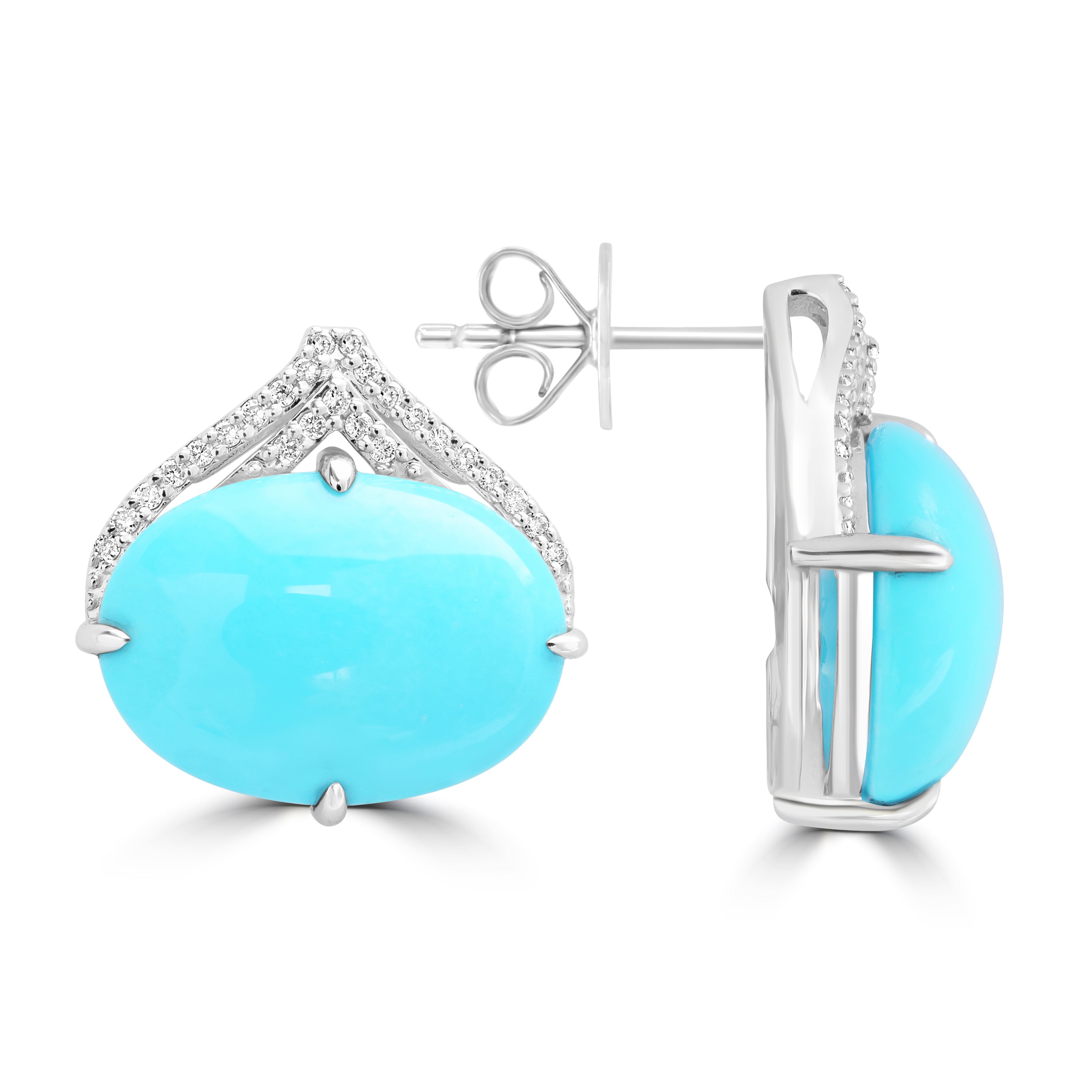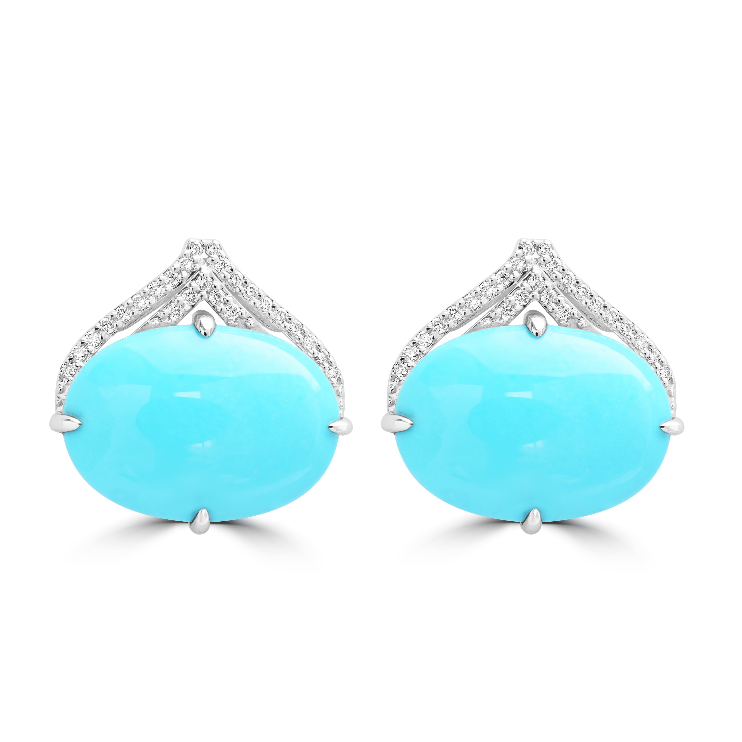 "7.57ct Turquoise Earrings with 0.125tct Diamond set in 14K White Gold"