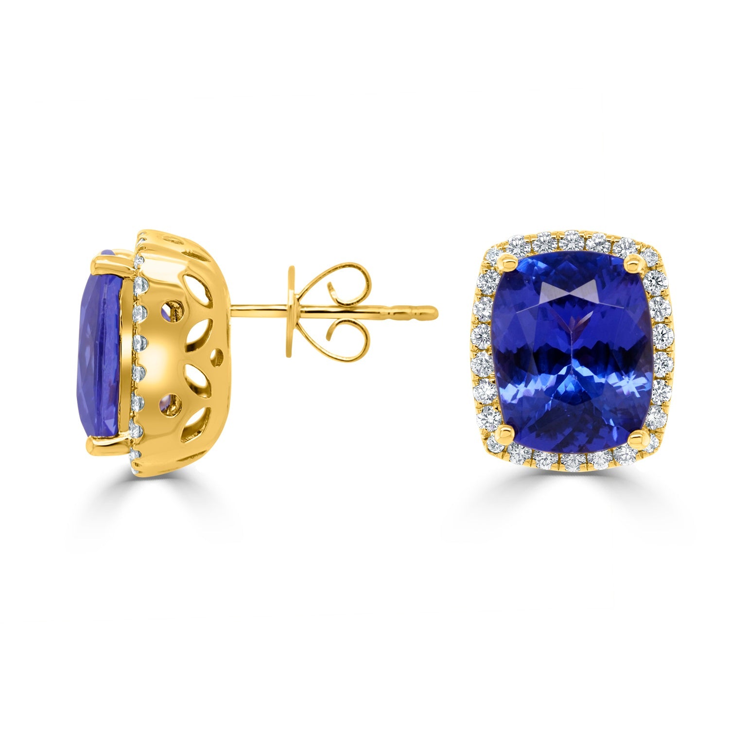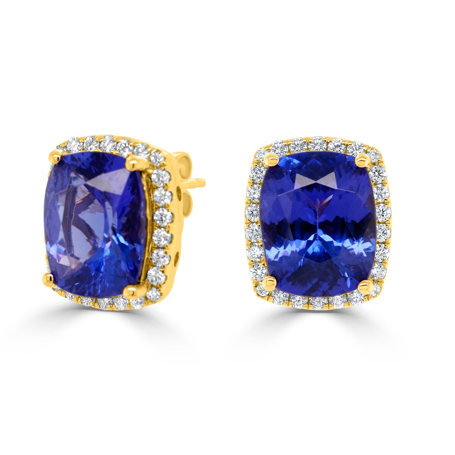 "Treat yourself with this impressive ring embellished with cushion-cut Tanzanite and a round Diamond in 14K yellow gold."