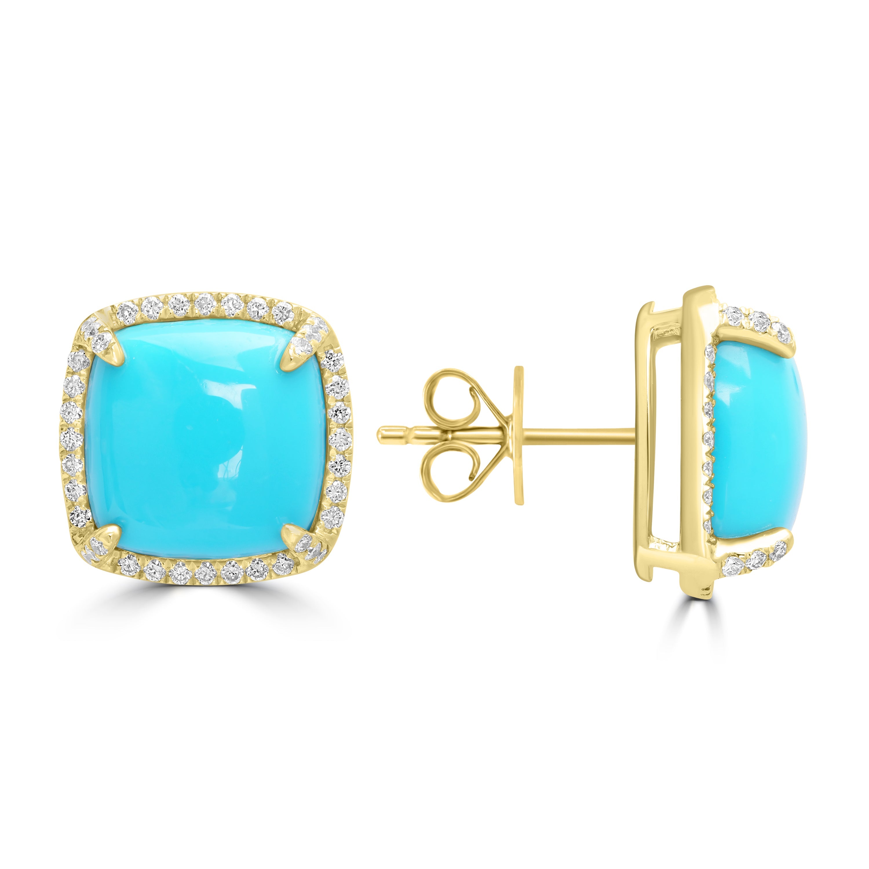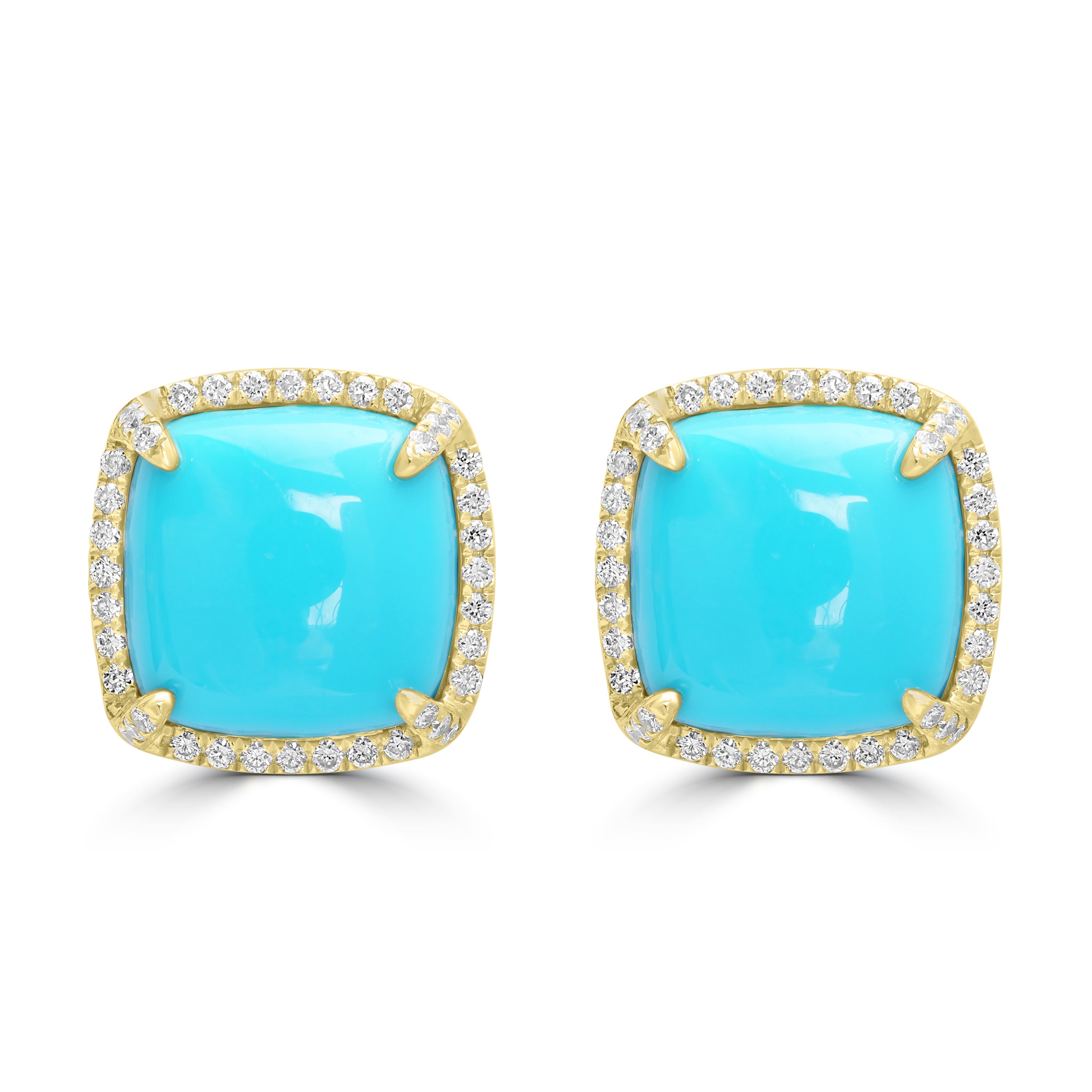 "7.94ct Turquoise Earrings with 0.303tct Diamond set in 14K Yellow Gold"
