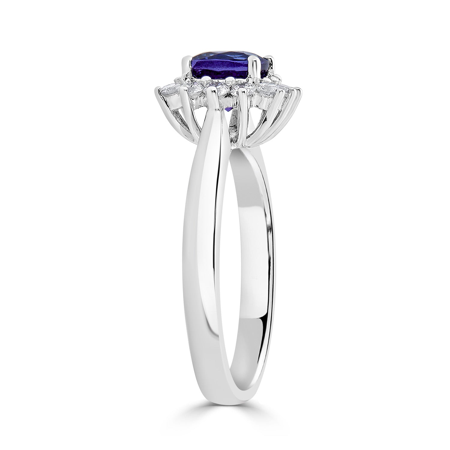 An Elegant 14k White Gold Ring To Add A Pleasing Finishing Touch To Your Outfit, Be It Casual Or Party Outfit. The Cushion-cut Tanzanite That Is Set Amidst Round Diamonds Gives A Mesmerizing Look With Its Sparkle.