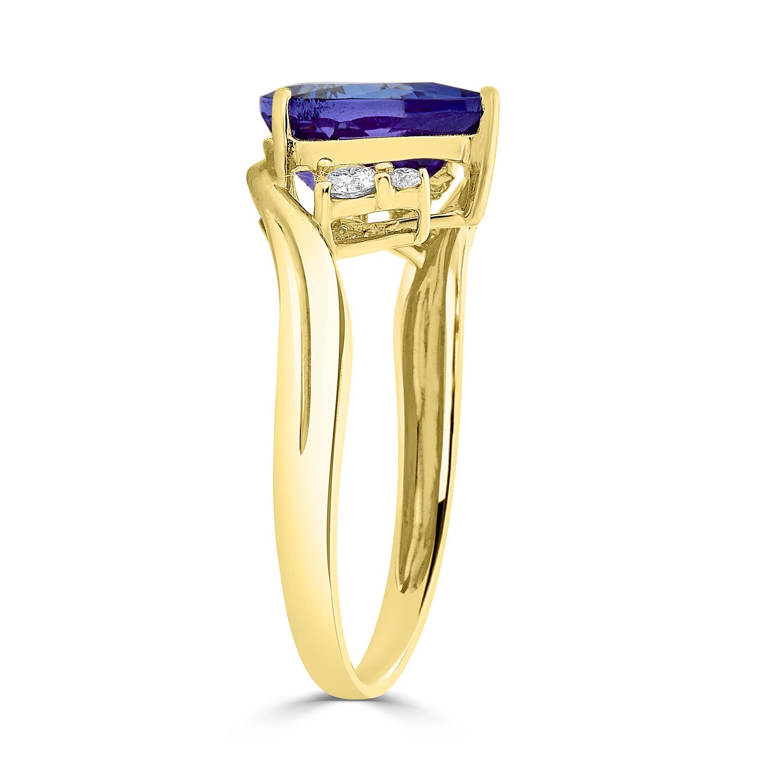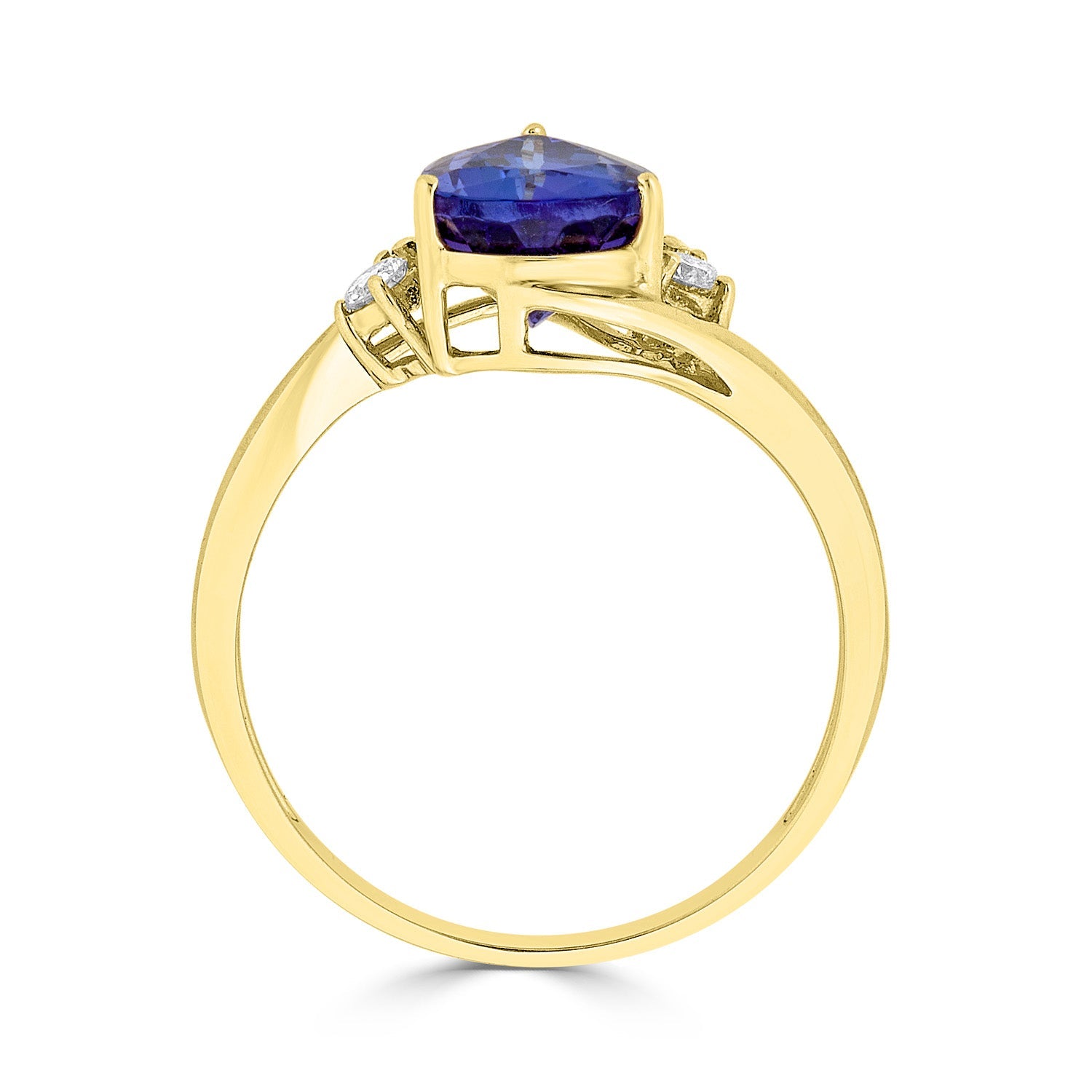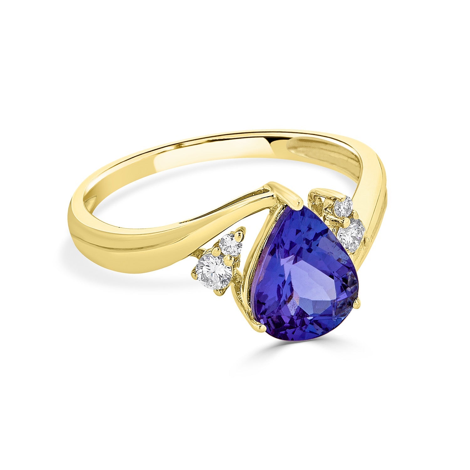 The Striking Beauty Of This 14k Yellow Gold Ring That Is Embellished With Pear-cut Tanzanite Makes It The Perfect Piece That Fit For Royalty. To Add More Shine To The Piece, Round-cut Diamonds Are Set Around In A Fabulous Pattern.