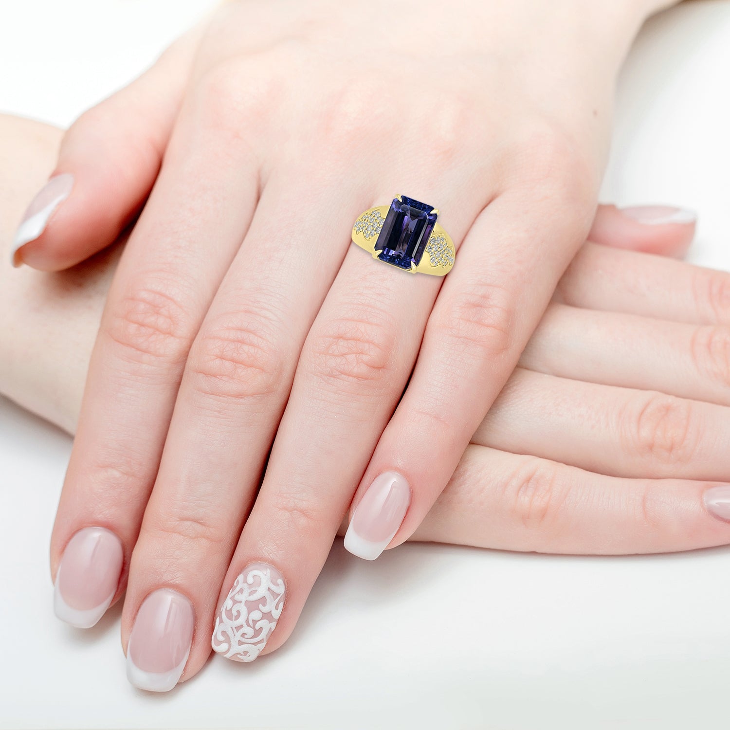 Designed expertly, this ring will add bling to your look. This iconic 18K yellow gold ring showcases a high-class design that is embellished with octagon-cut Tanzanite and round Diamonds to give it a sophisticated look. Add a touch of shine to your overall look!
