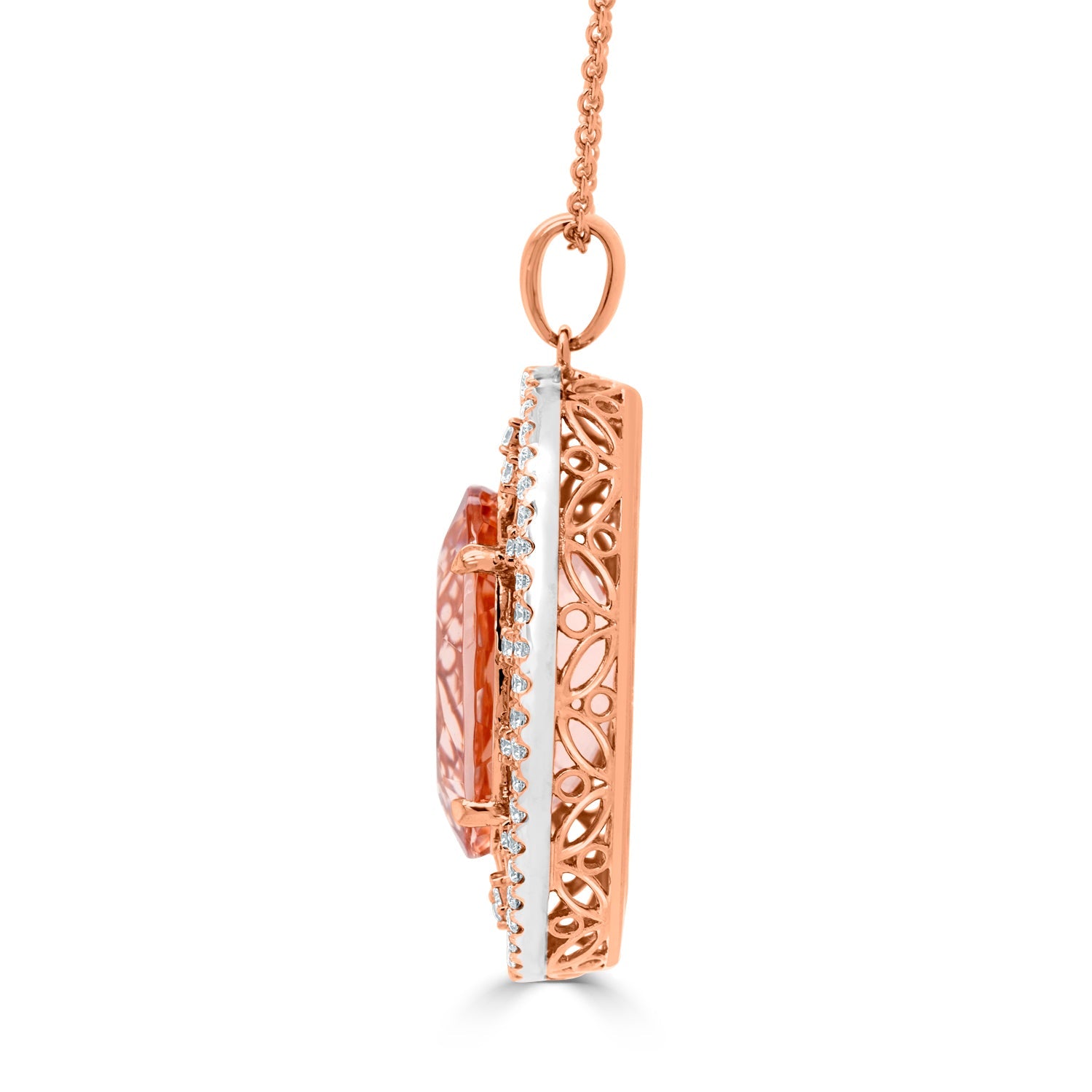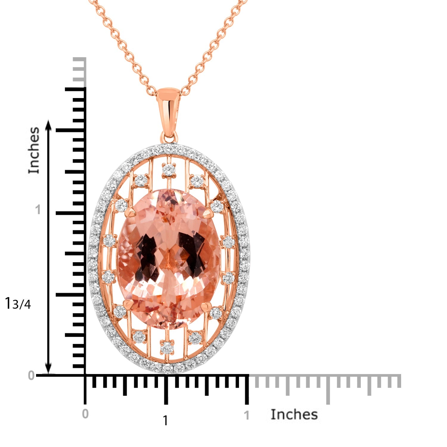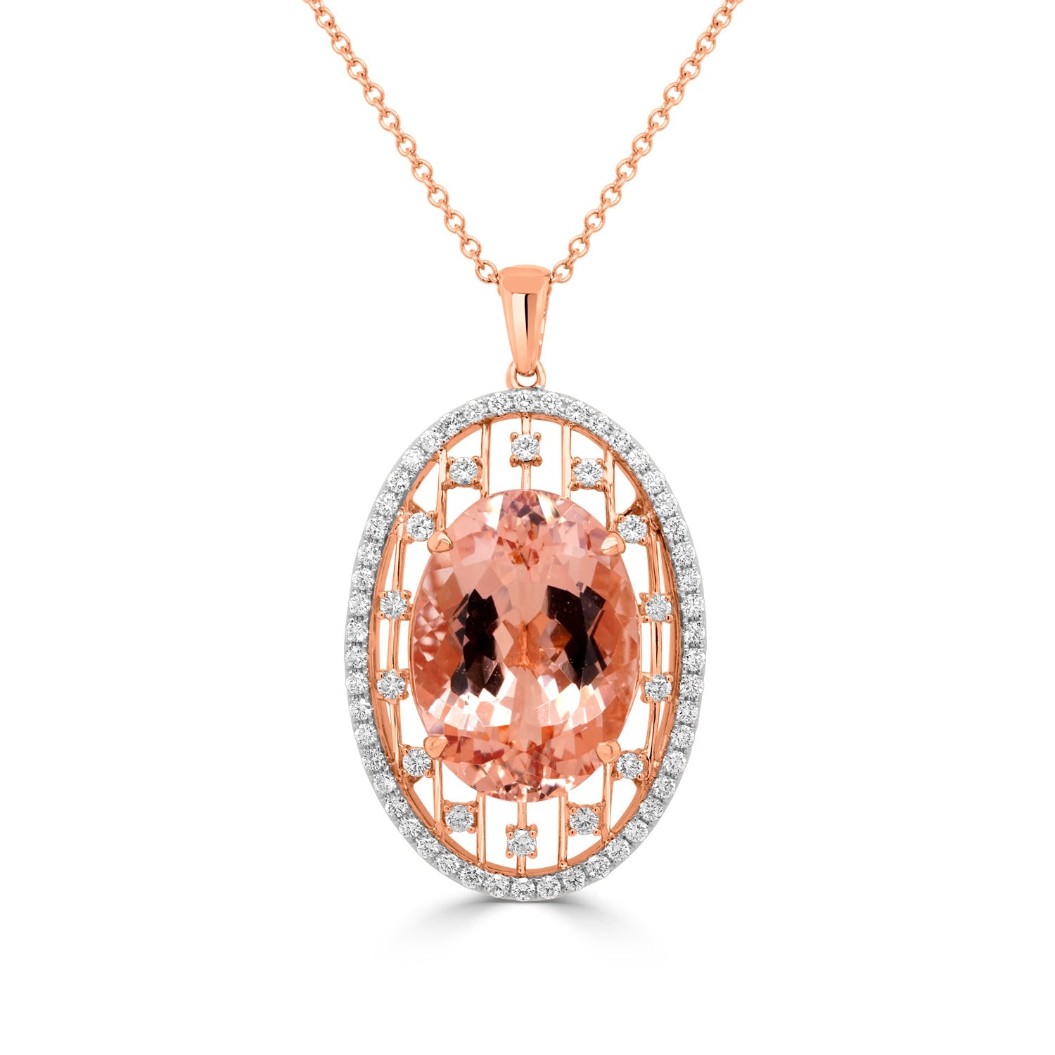 This grand 14K two-tone gold pendant is set with an oval-cut Morganite and round Diamonds that are unforgettable!