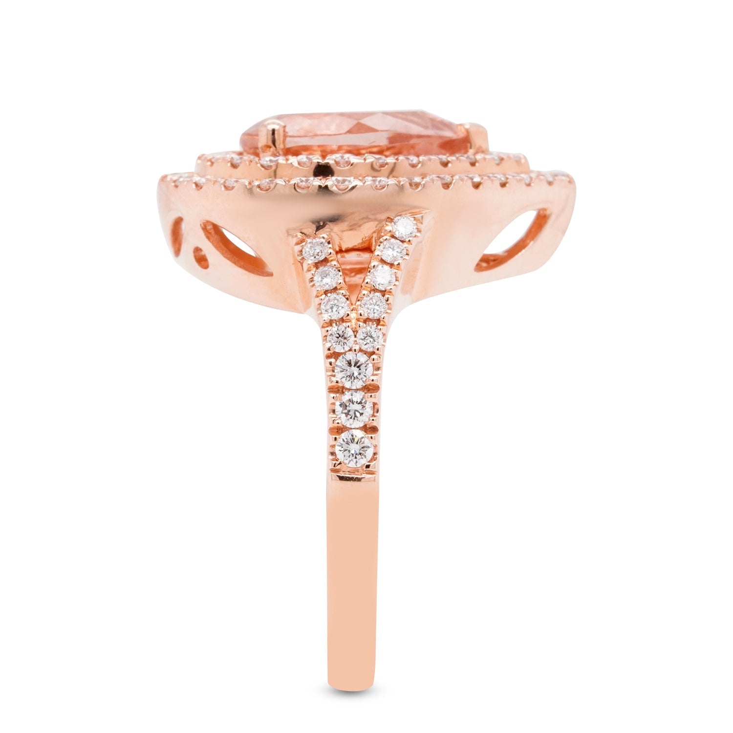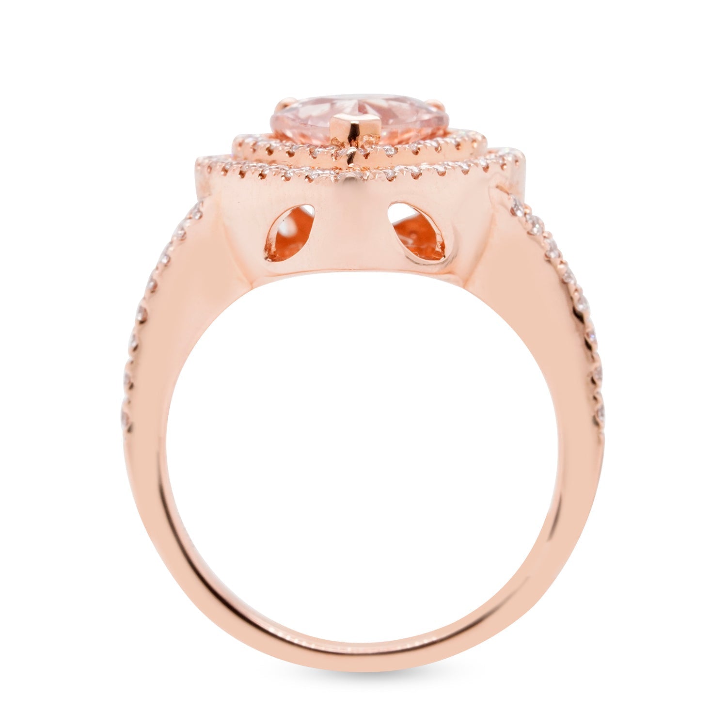 Designed With 14k Rose Gold, The True Beauty Of This Ring Comes From Its Brilliant Mix Of Shades. Embellished With A Striking Pear-cut Morganite That Radiates A Stunning Glow, This Enchanting Ring Is Bordered By Fabulous Round Cut Diamonds Which Give It A Sparkling Finish.