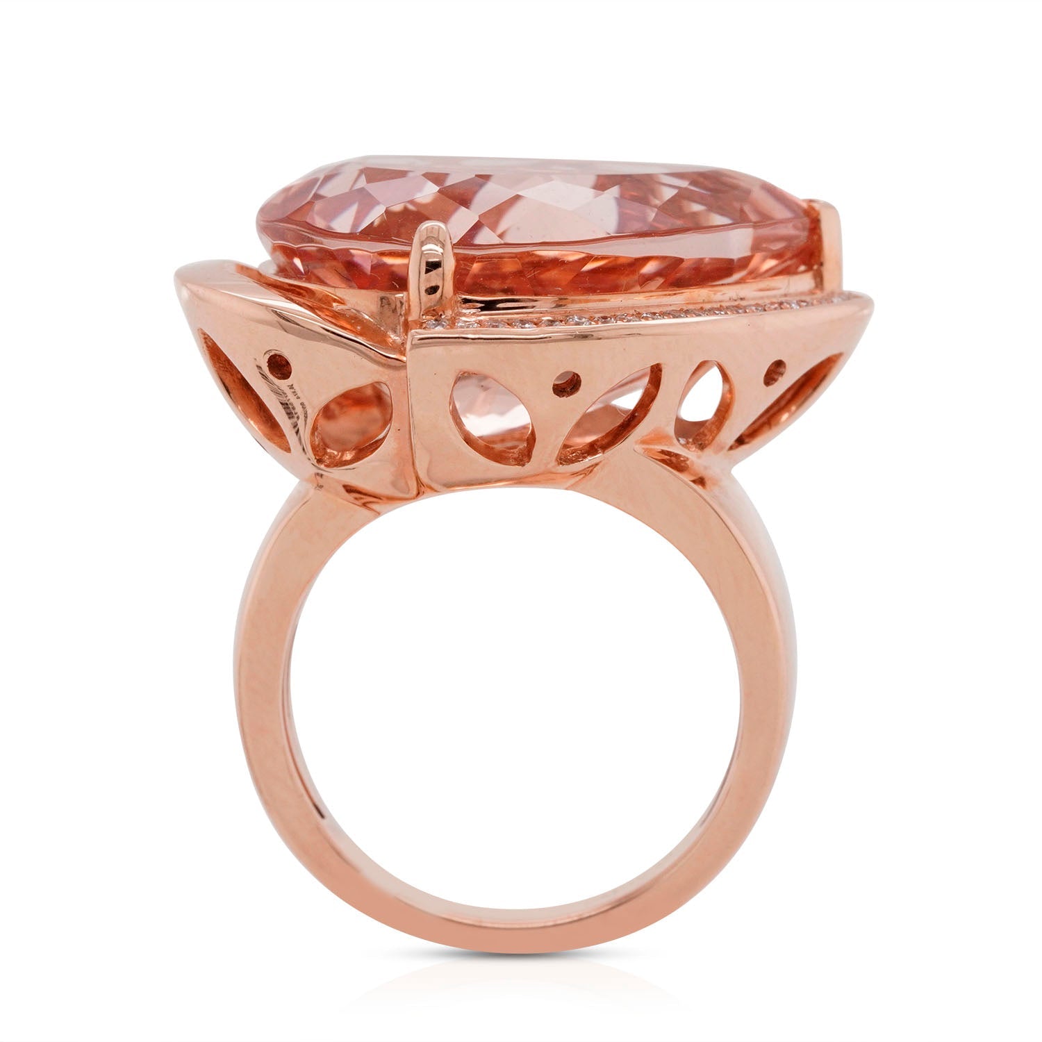 Designer 19.46Ct Morganite Ring With 0.10Ct Diamond Ring In 14Kt Rose Gold