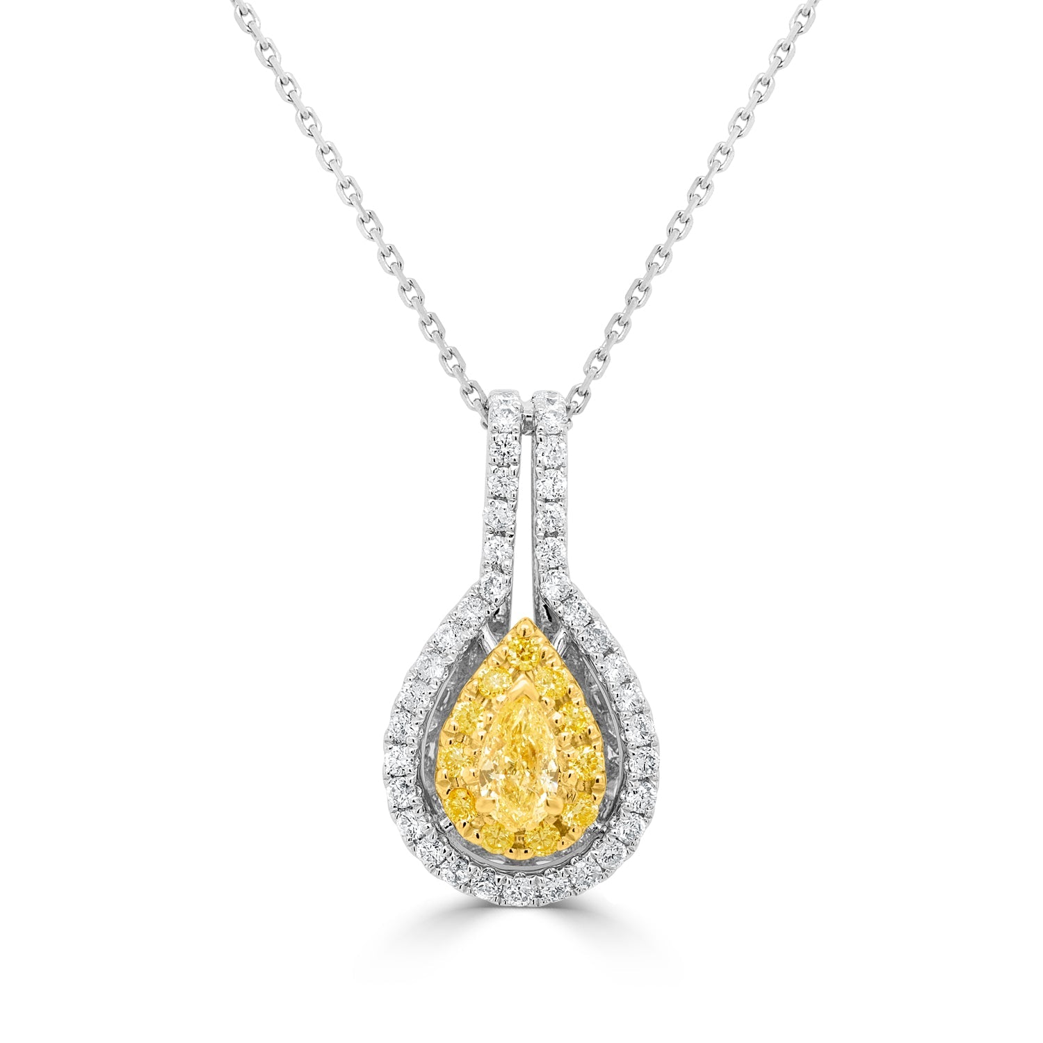 This wonderful 18K two-tone gold pendant is set with pear-cut yellow Diamonds and round Diamonds.