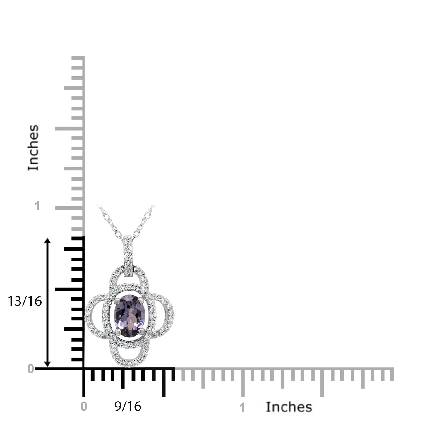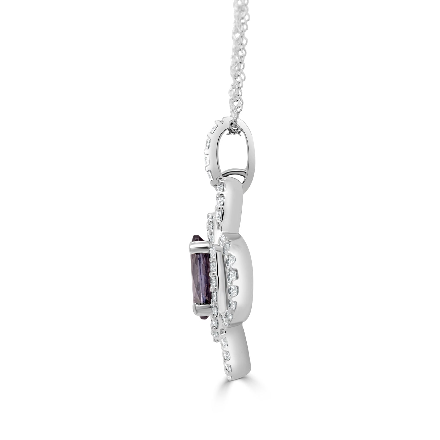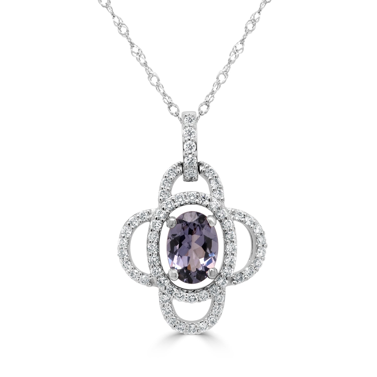 This stunning pendant is designed with 14k white gold. Set with an oval-cut Spinel and round Diamonds that are simply lovely.