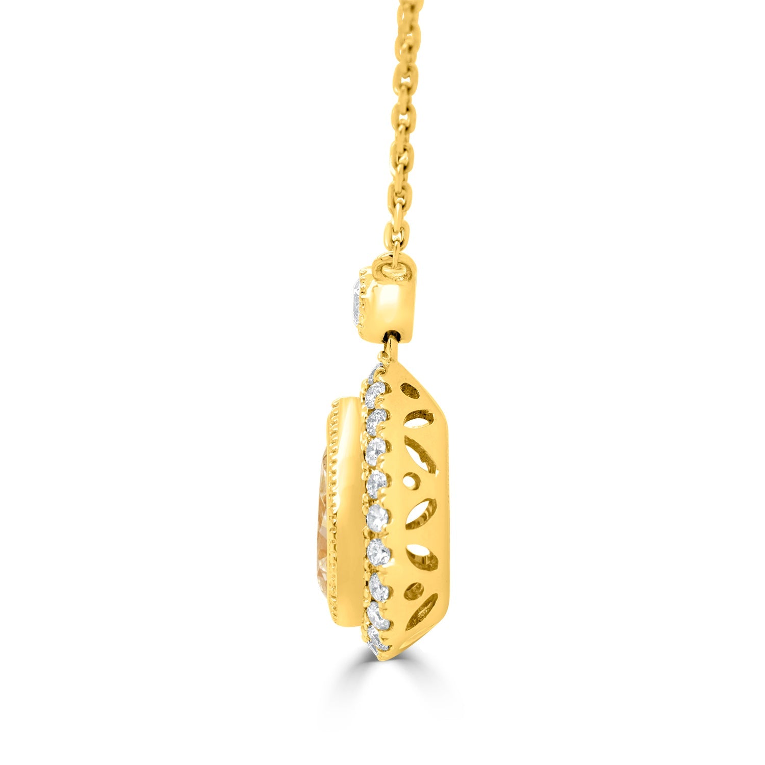 This necklace is designed with 18k white gold and se with a pear-cut fancy and round Diamonds.