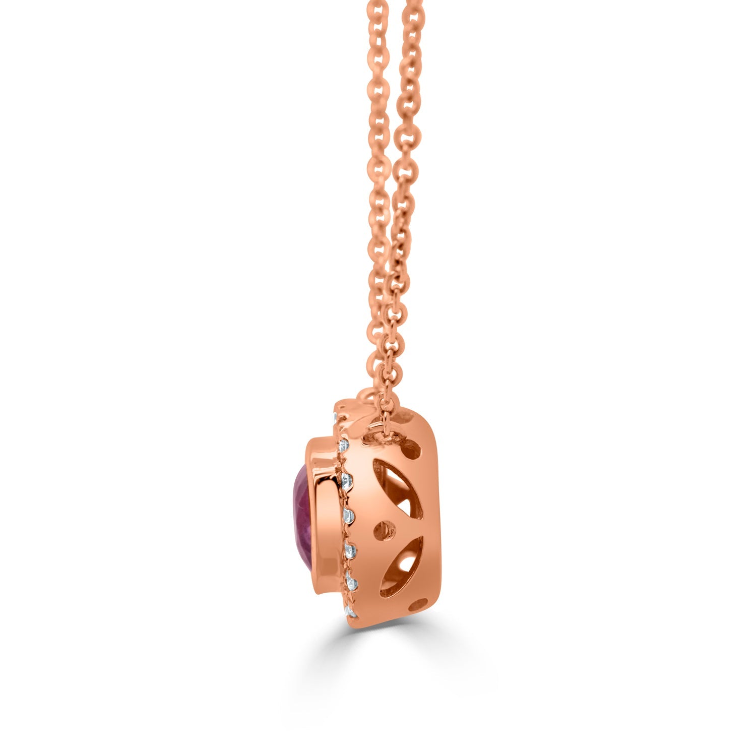 Perfectly Exhibiting Your Fashion Sense, This Fantastic 14k Rose Gold Necklace Gives A Luxury Kick With Its Exemplary Design That Is Set With The Sparkle Of Cushion-cut Sapphire And Round Diamonds. Crafted From 14k Rose Gold, This Necklace Looks Classy.