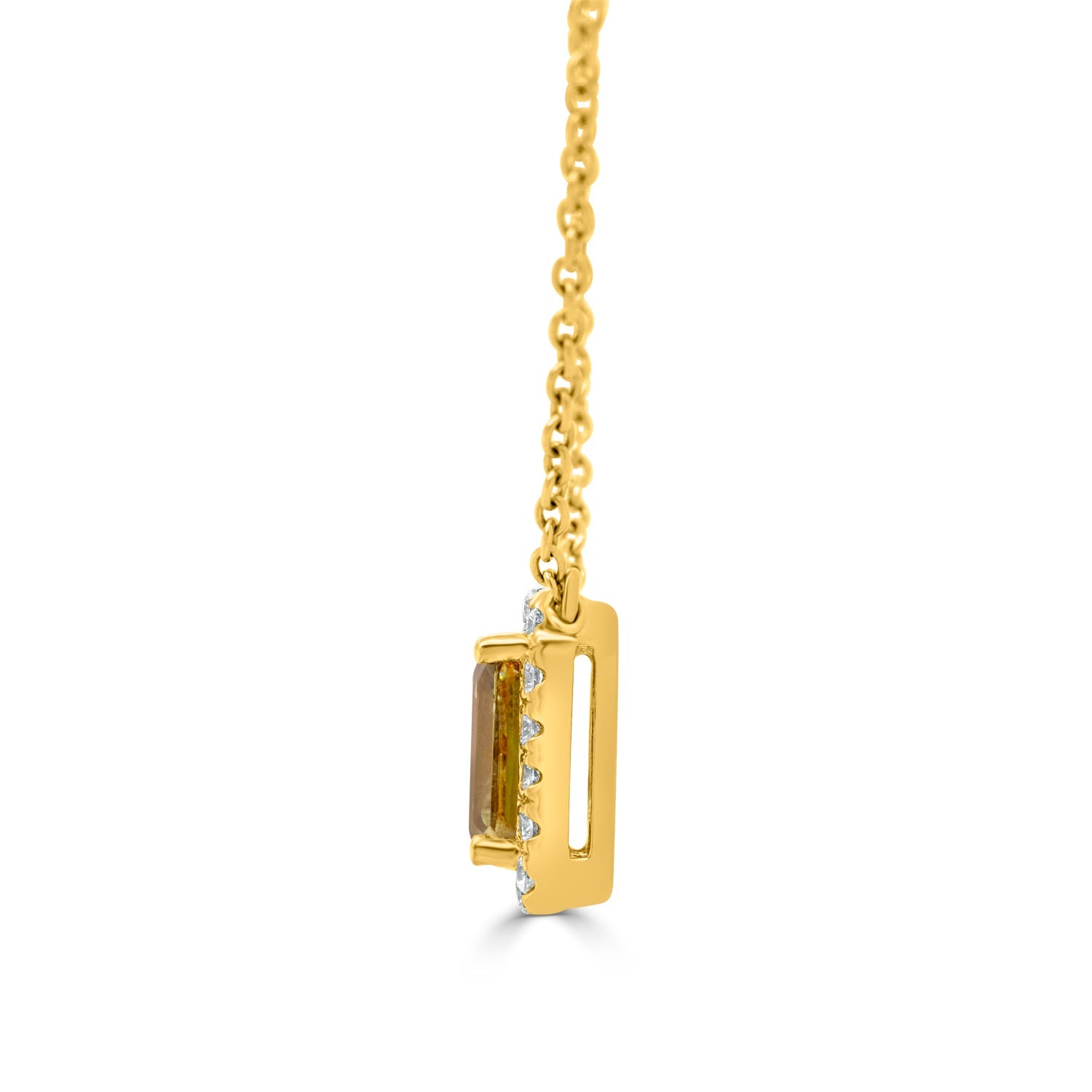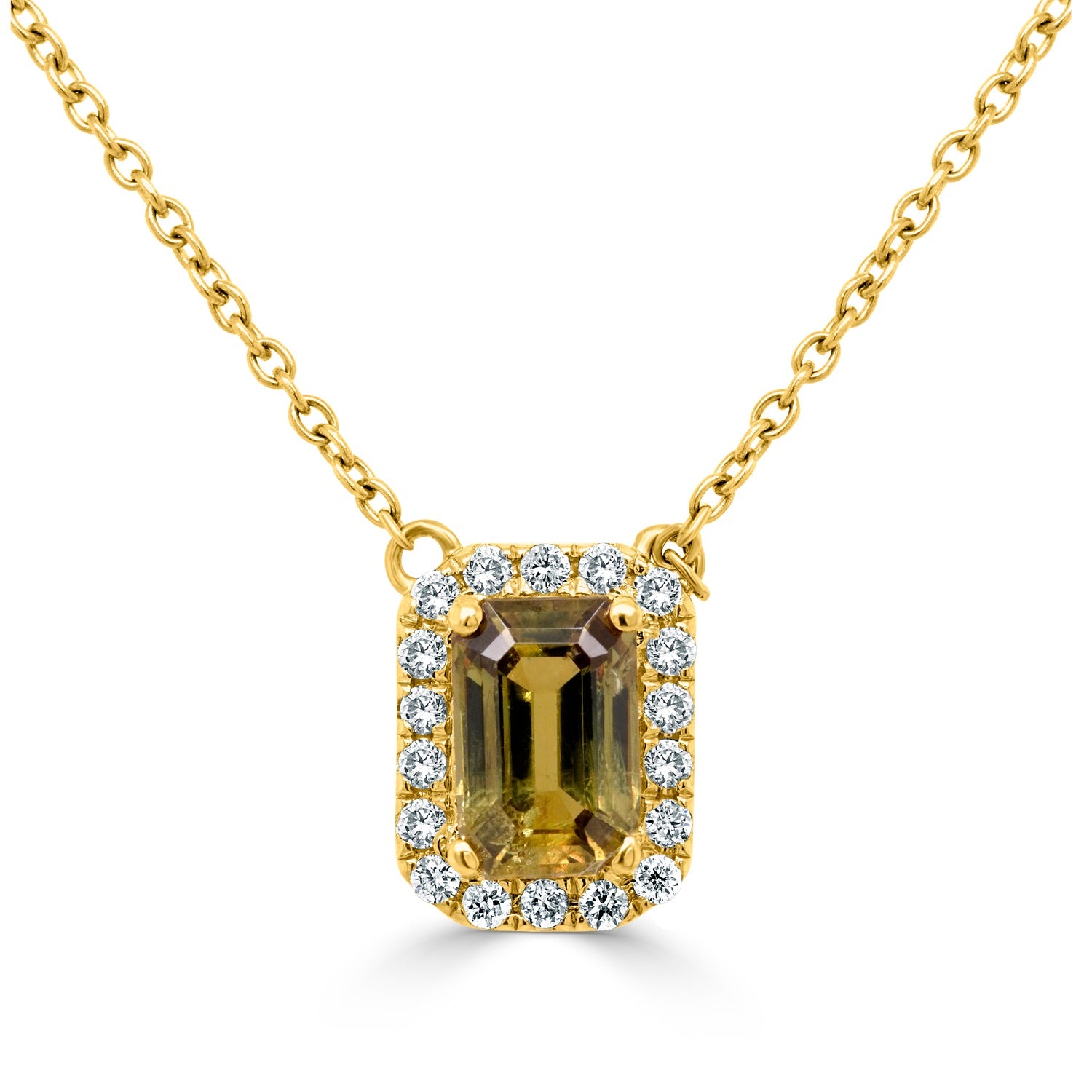 Designed of 14k white gold, this luxurious necklace designed from 14k white gold and set with octagon-cut Demantoid Garnet and round Diamonds.