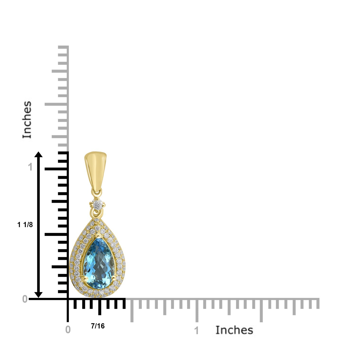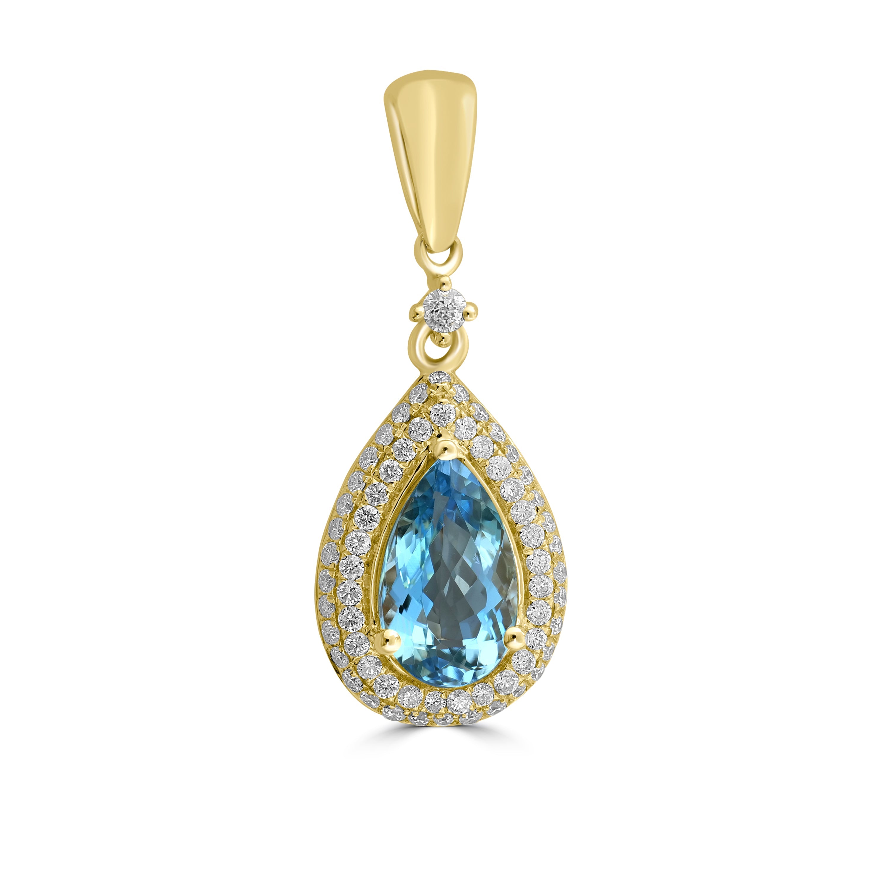 Exquisite and captivating, this 18K yellow gold pendant showcases timeless craftsmanship. The high-class design features a pear-cut Aquamarine and round Diamonds, adding endless glitz. Make a statement at any event with this splendid accessory.