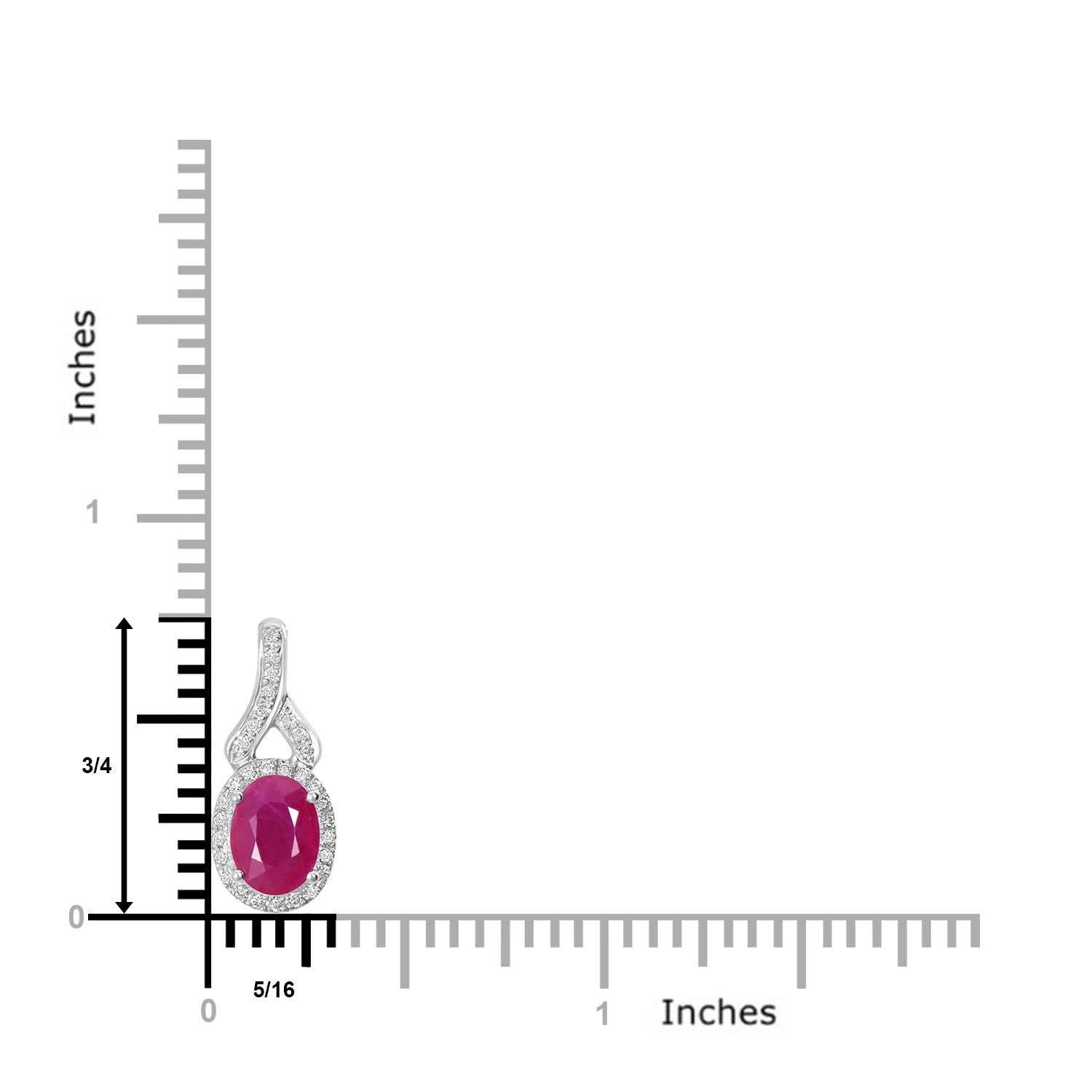 Be it a small party or a grand event, this marvelous pendant will complement your look perfectly. This adorable pendant is creatively designed with 14k white gold. Fashioned to perfection, the oval-cut Ruby and round Diamonds are its specialties!