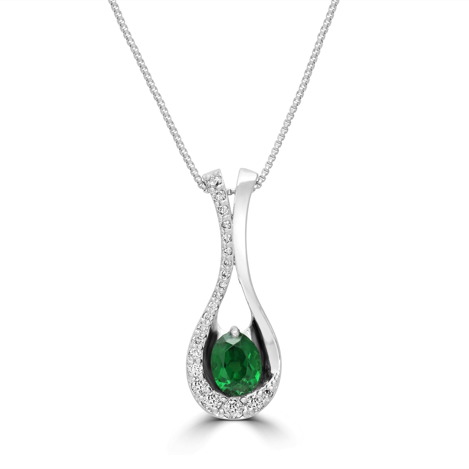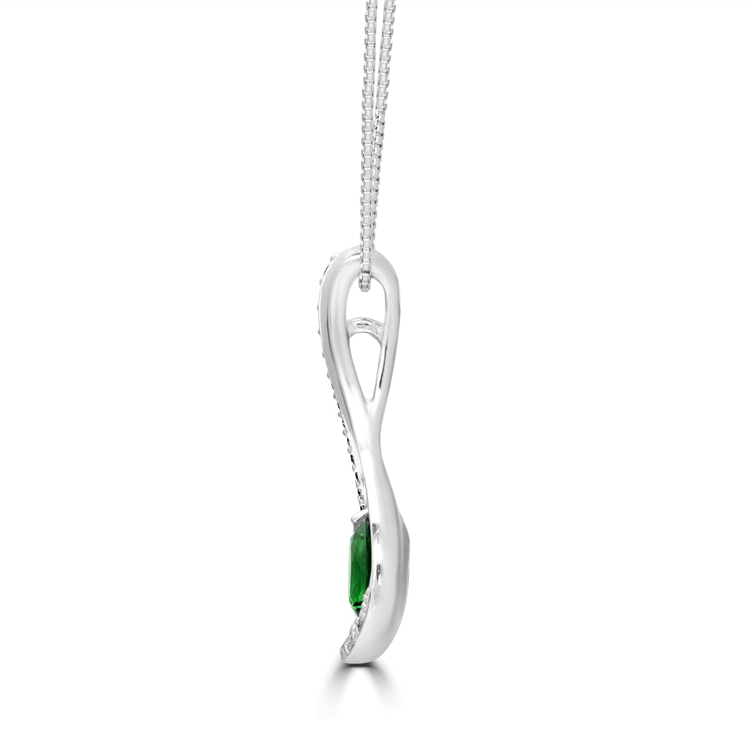 This stunning pendant is crafted from 18k white gold and set with a radiant oval-cut Tsavorite with glittering round Diamonds around it.