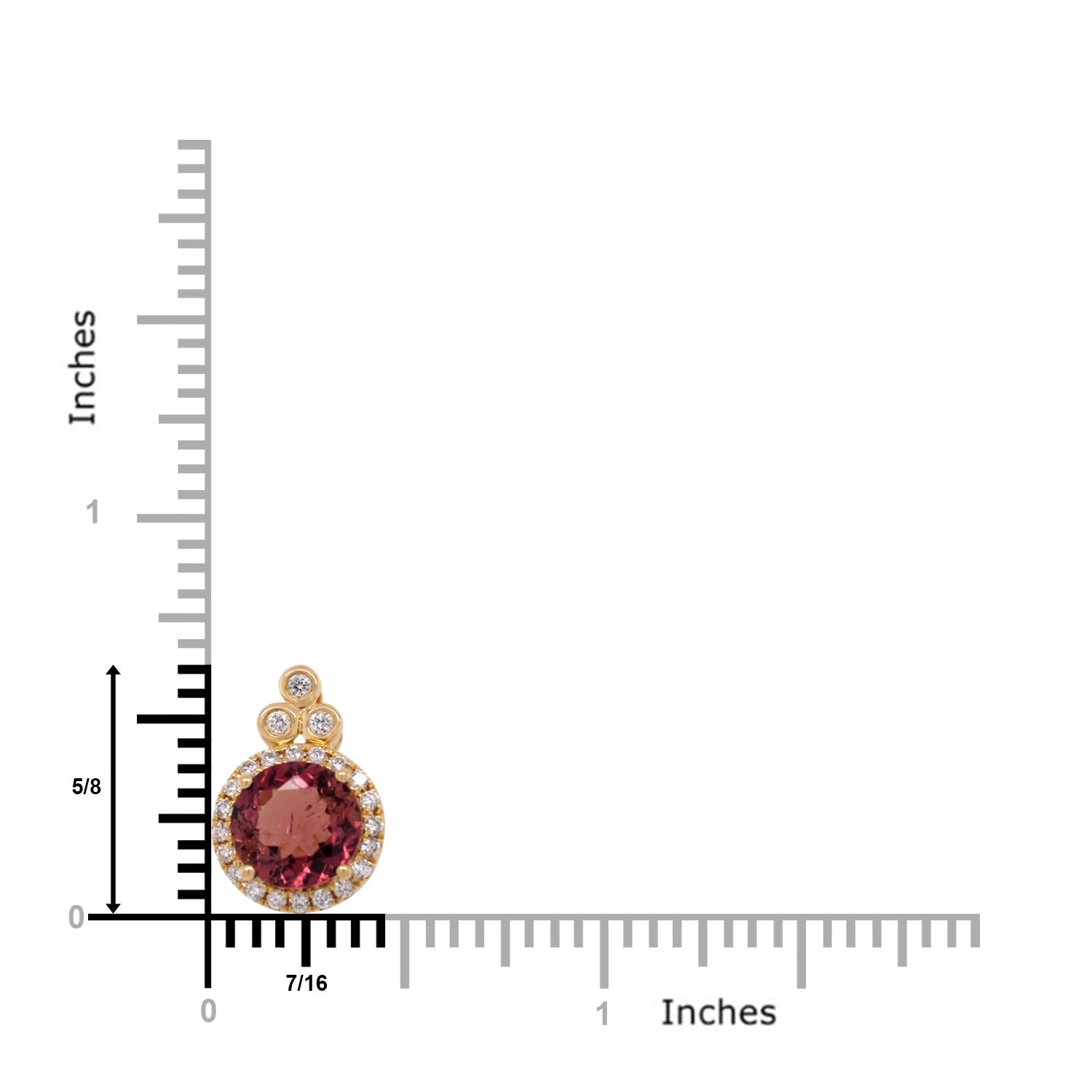 The deep color of the Tourmaline is showcased in its glorious round cut which gives this attractive pendant an unmatched glow. Further enhanced by the glitter of the round cut Diamonds, this tasteful jewelry adds both charm and glamour to your look that will definitely draw everyone's attention. Designed in 14K yellow gold, this posh pendant is created to be admired!