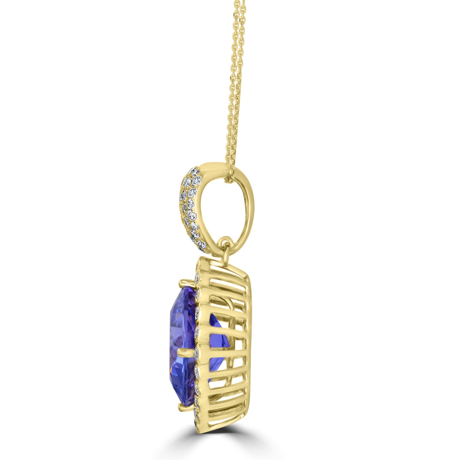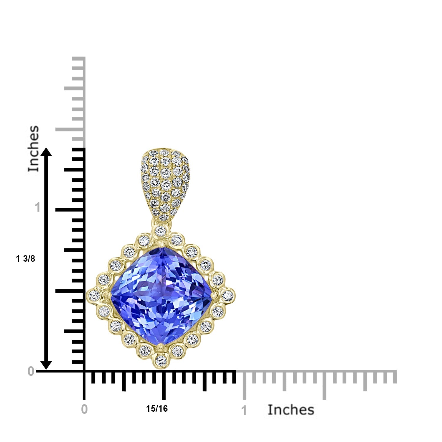 Designed to perfection with 18K yellow gold for a lustrous finish, this radiant pendant is set with an enchanting cushion cut Tanzanite. Bordered by shimmering round cut Diamonds, this dazzling jewelry nails the perfect look each time.