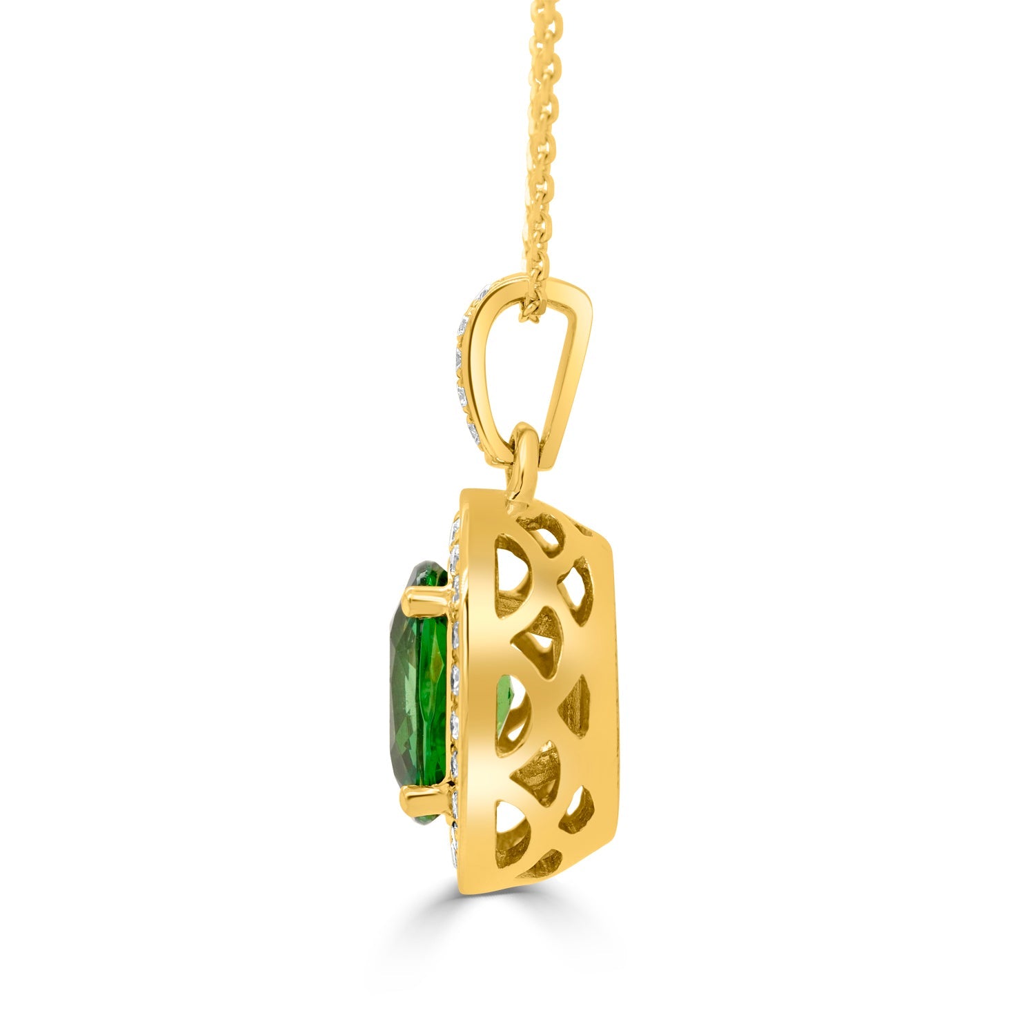 2.03ct Tsavorite Pendant with 0.24tct Diamonds set in 14K Yellow Gold