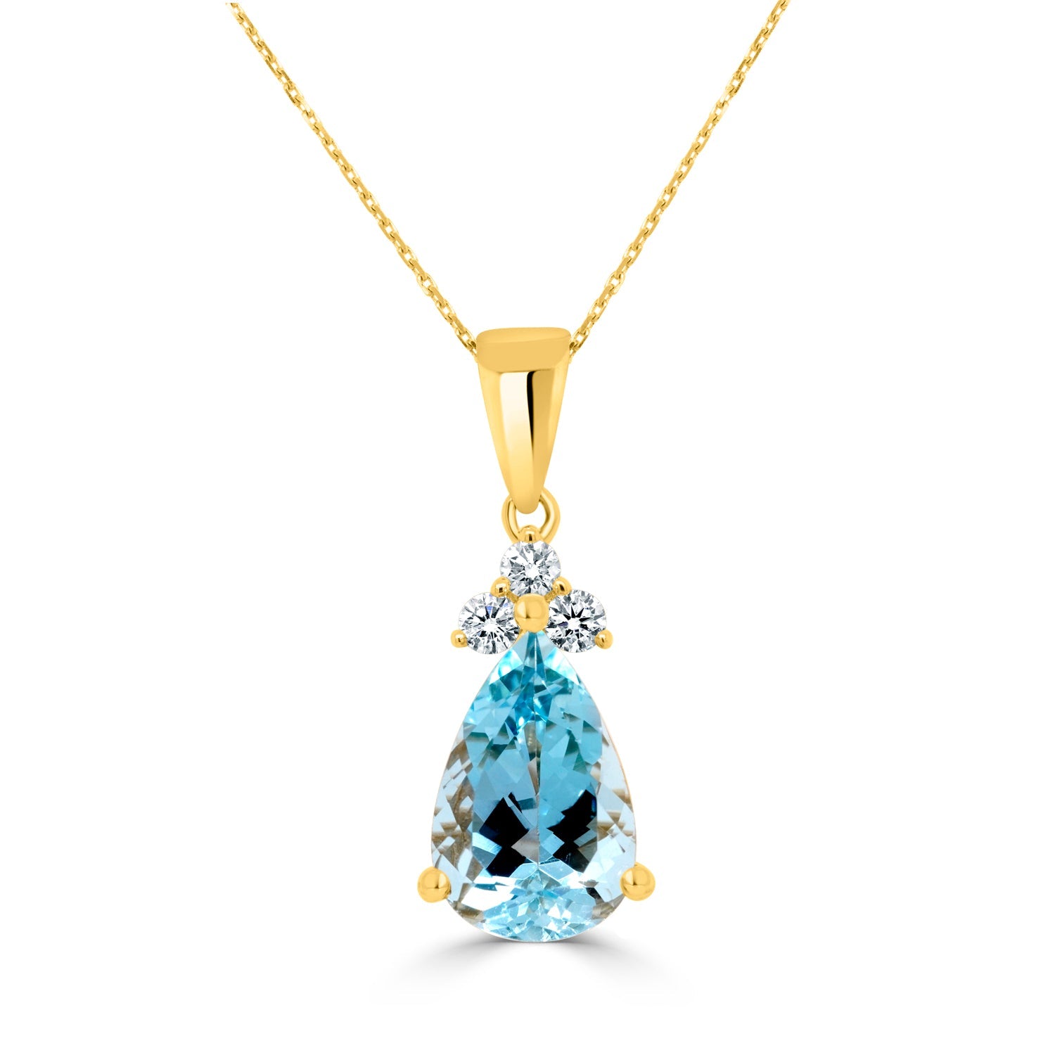 This beautiful pendant is crafted from 14k yellow gold. Set with a pear-cut Aquamarine and round Diamonds, it can go from casual to dressy in a heartbeat.