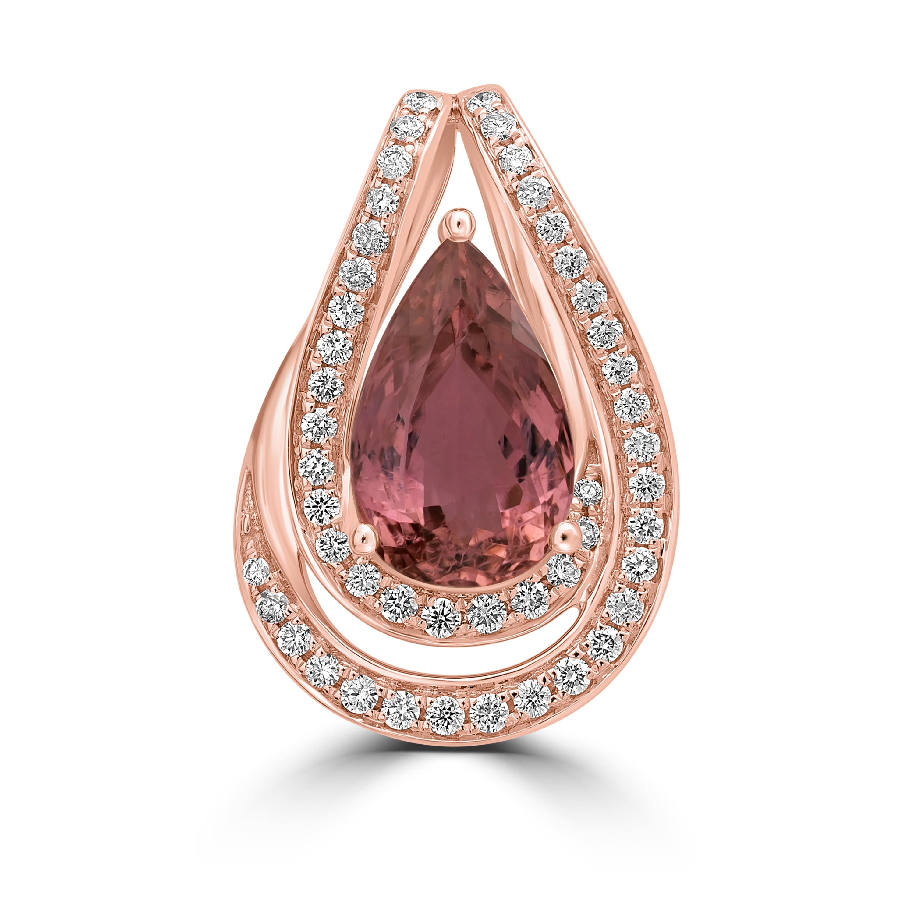 Crafted with precision in 18K rose gold, this luxury pendant exudes class and style. The high-class design and shimmering pear-cut Tourmaline and round Diamonds lend an effortlessly smart look. Perfect for adding grandeur to any outfit or gifting to a special friend.