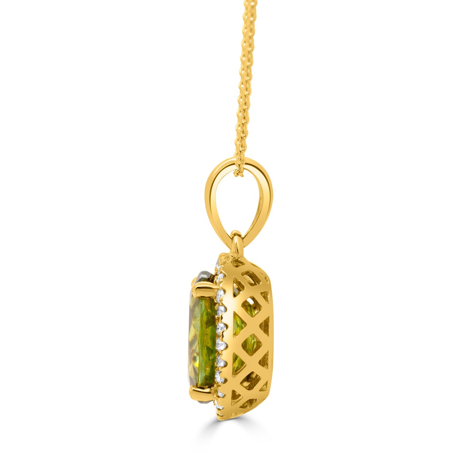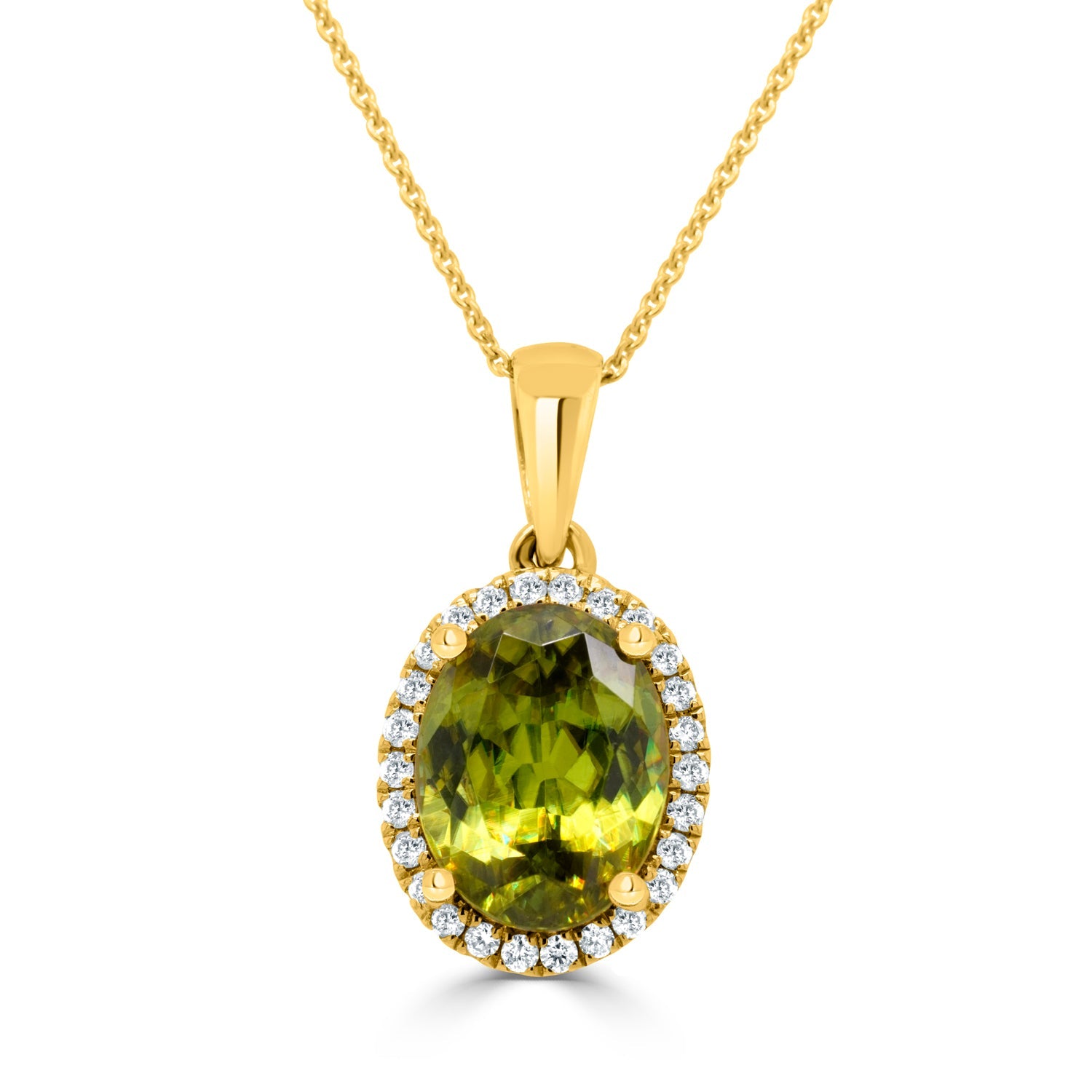 Crafted From 14K Yellow Gold, This Party-Wear Pendant Makes A Great Gift For Your Loved Ones. Featuring Oval-Cut Sphene And Round Diamonds In An Interesting Setting, This Pendant Can Go From Dressy To Luxury Style Outfits.