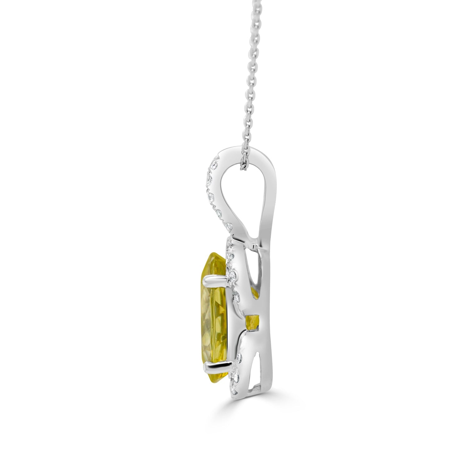 Crafted from 14k white gold, this stunning pendant is set with an oval-cut Sphene and round Diamonds that give it a charming look.