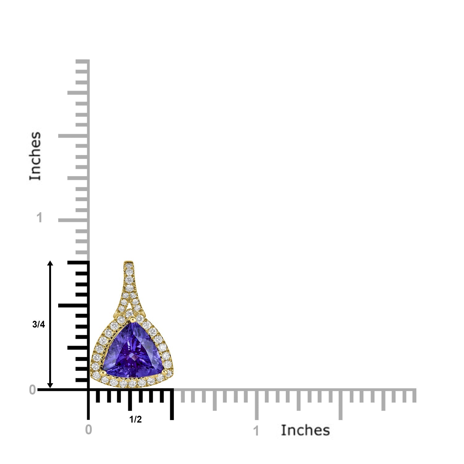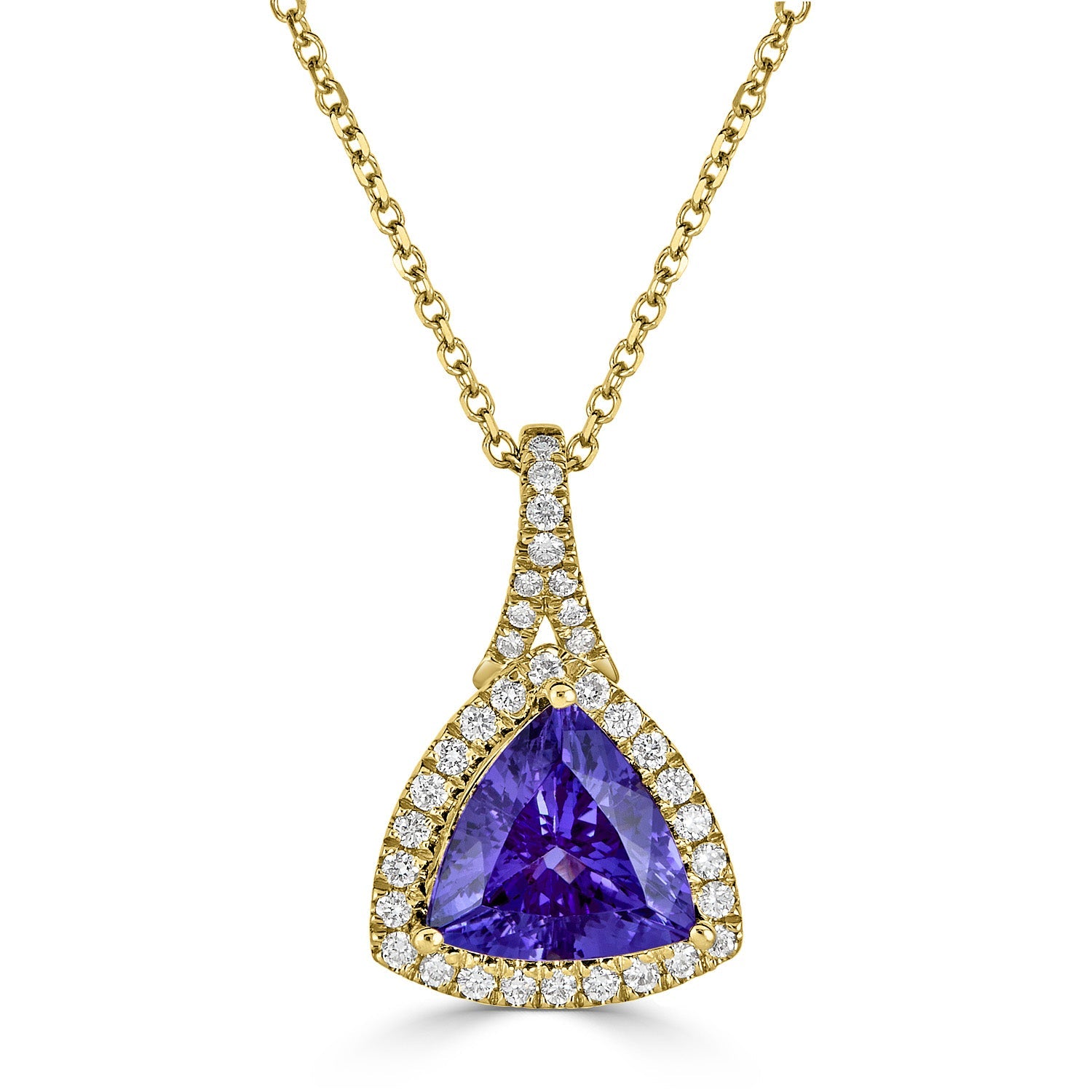 This fashionable 14K yellow gold pendant provides luxury style with a dose of world-class design and shiny gemstones. The design showcases trillion cut Tanzanite and round Diamonds to give a stylish look. You will surely gonna get noticed.