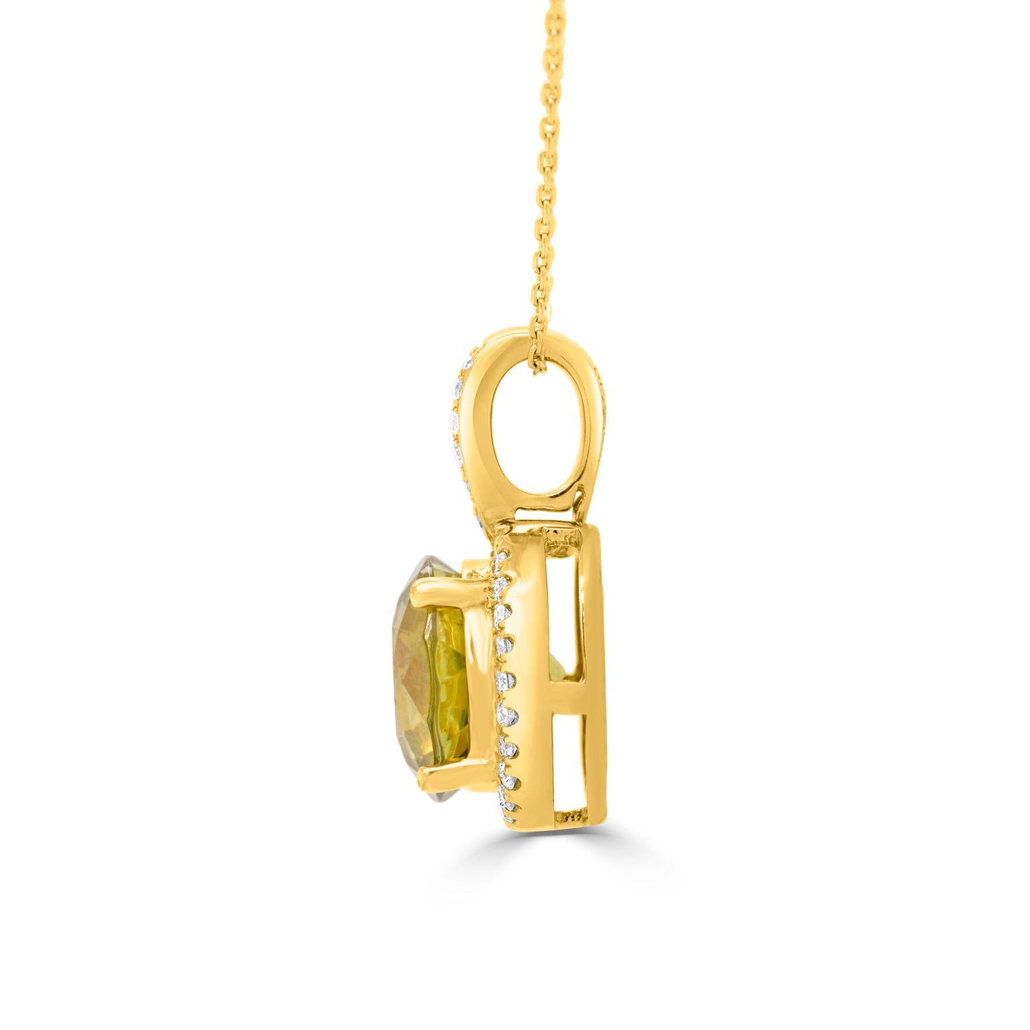 This fabulous pendant fashioned with 14K yellow gold and set with a round-cut Sphene and round Diamonds making it the perfect accessory.