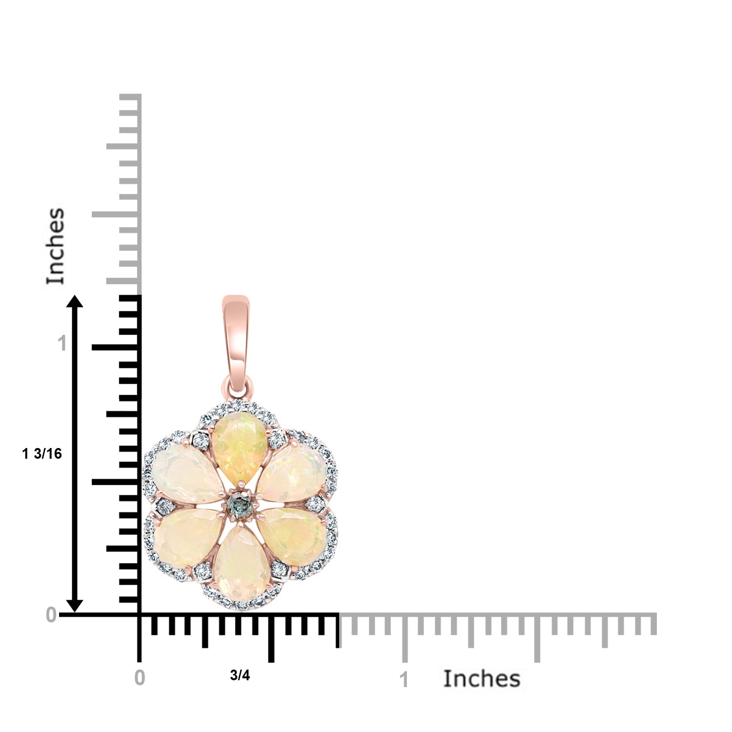 This stunning pendant is perfectly studded with a pear cut Opal in 14K yellow gold with perfect harmony. Surrounded by the eye-catching round cut diamonds that add a finishing sparkle that will add instant flair to any style of apparel.