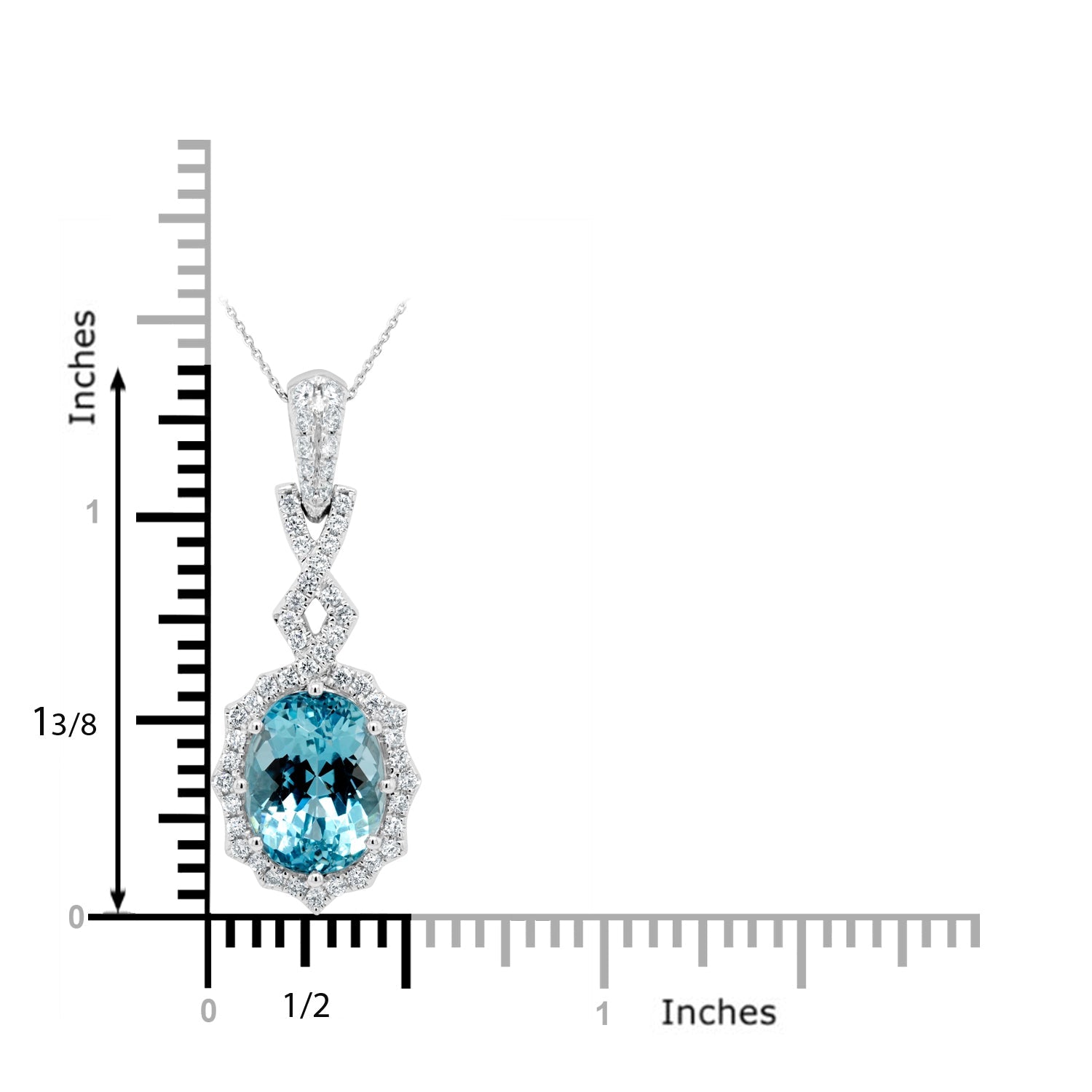 Designed With A Striking Oval Cut Aquamarine, This Glorious Pendant Is Bordered By The Sparkle Of The Round Cut Diamonds. Crafted Of 14K White Gold, This Fine Jewelry Is All You Need To Leave A Lasting Impression Wherever You Go.