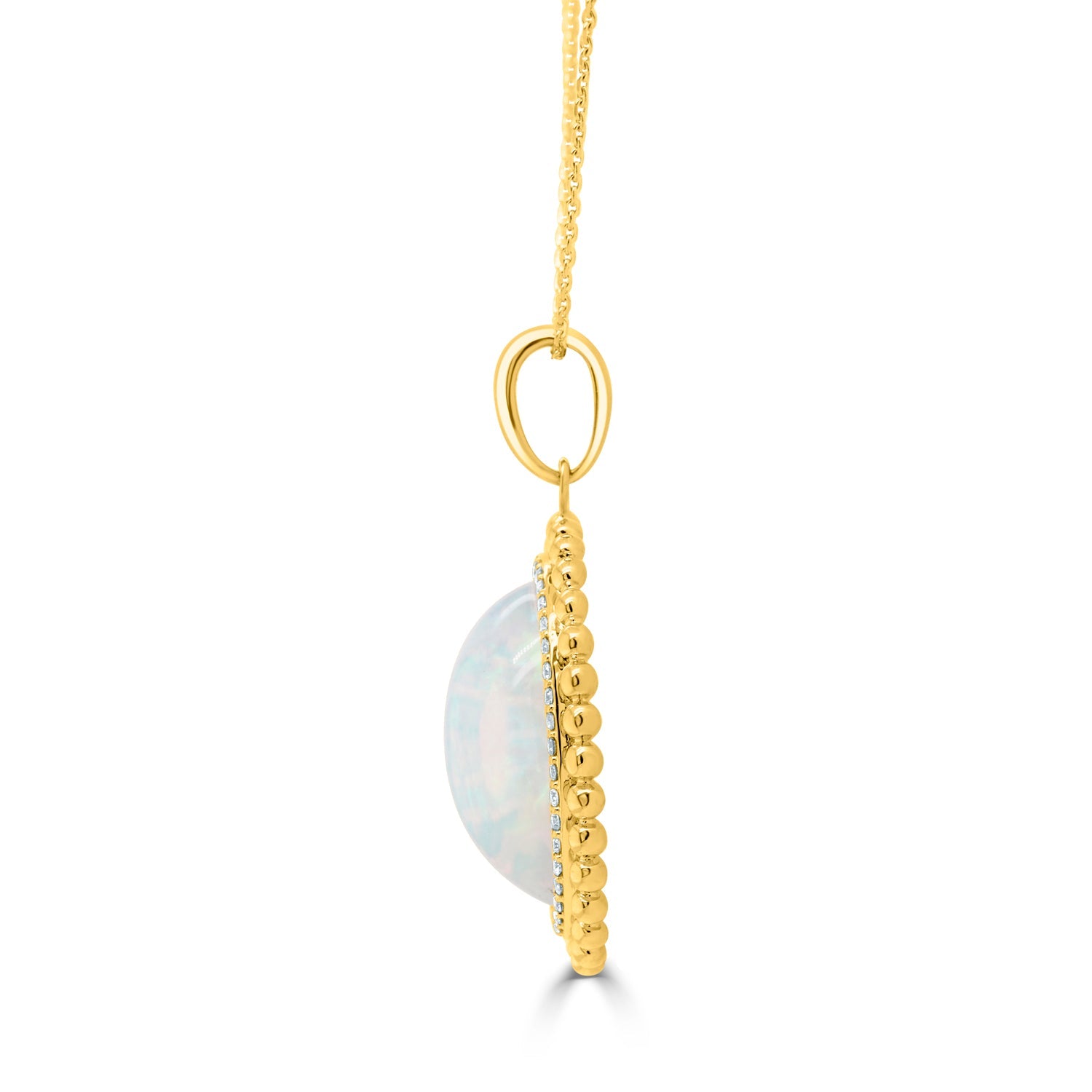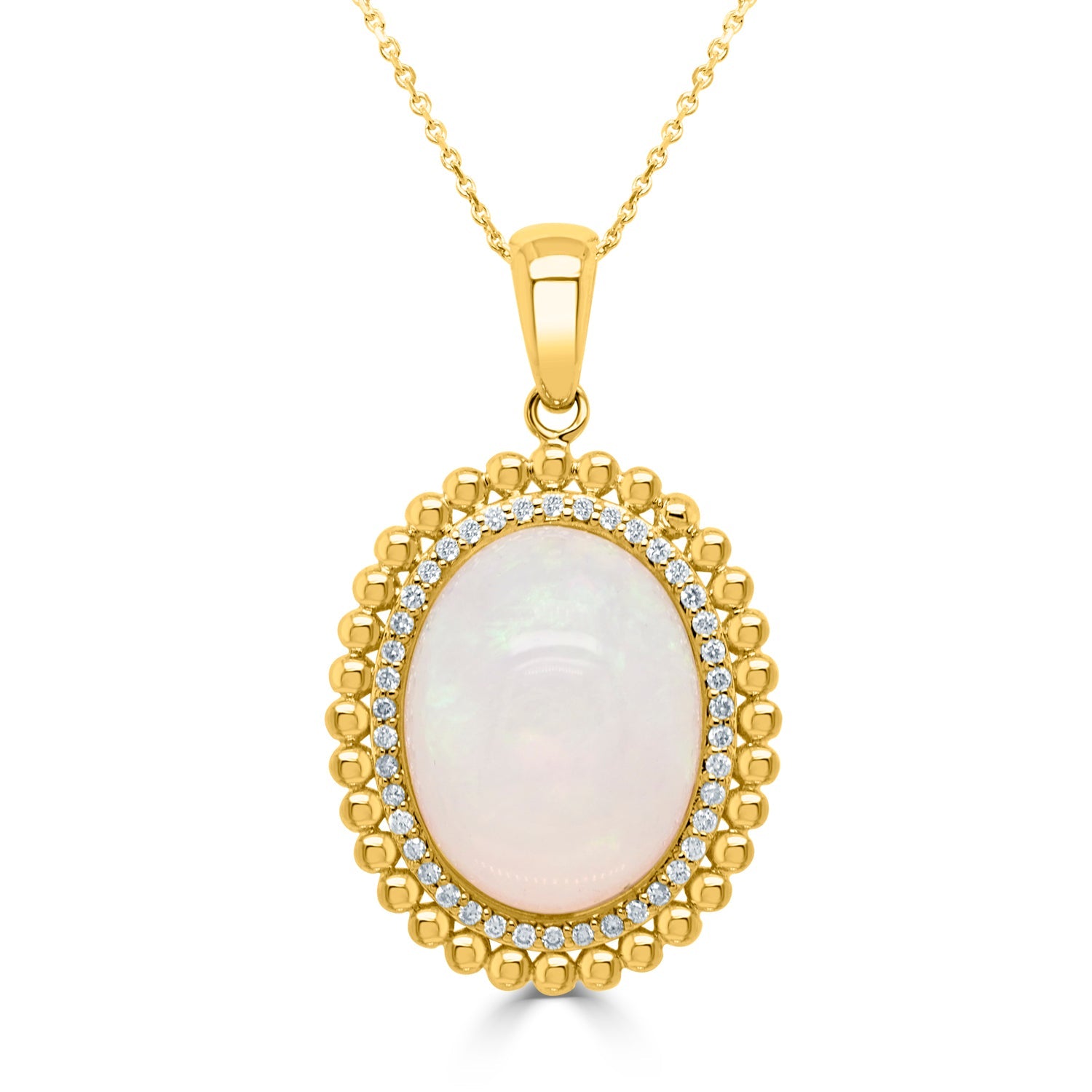 Designed with luminous 14K yellow gold, this eye-catching pendant is set with a stunning oval-cut Opal. This elegant pendant also has shimmering round cut Diamonds set in it that are sure to dazzle everyone around on special occasions.