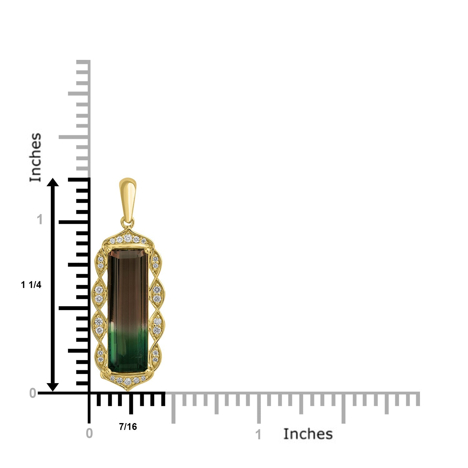 This 18K yellow gold pendant adds a well-groomed finish to your look. Perfect for parties and special events, its timeless design exudes sophistication. With an emerald-cut Tourmaline and round Diamonds, it pays tribute to ethereal charm and timeless opulence.