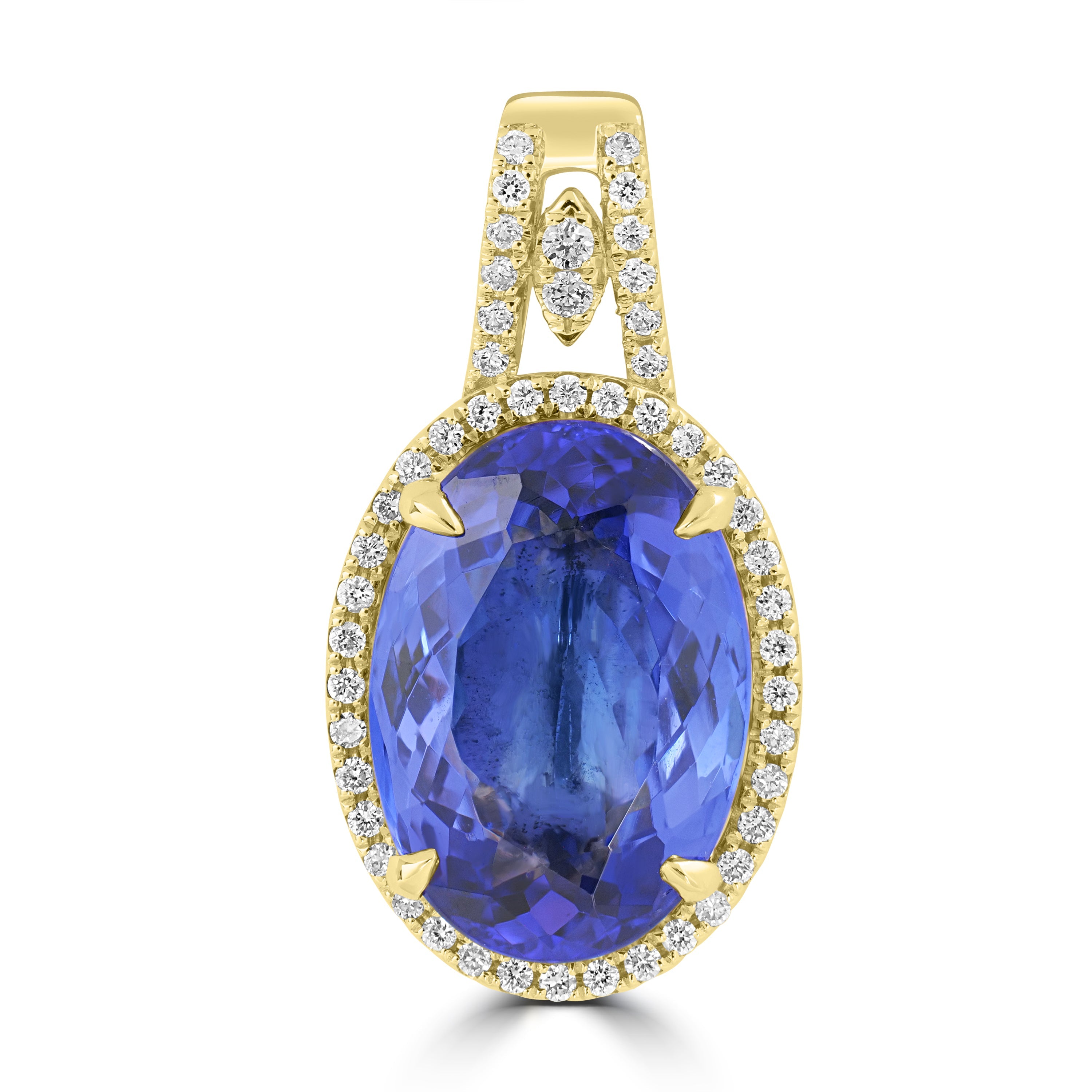 6.04ct Tanzanite Pendants with 0.207tct Diamond set in 18K Yellow Gold