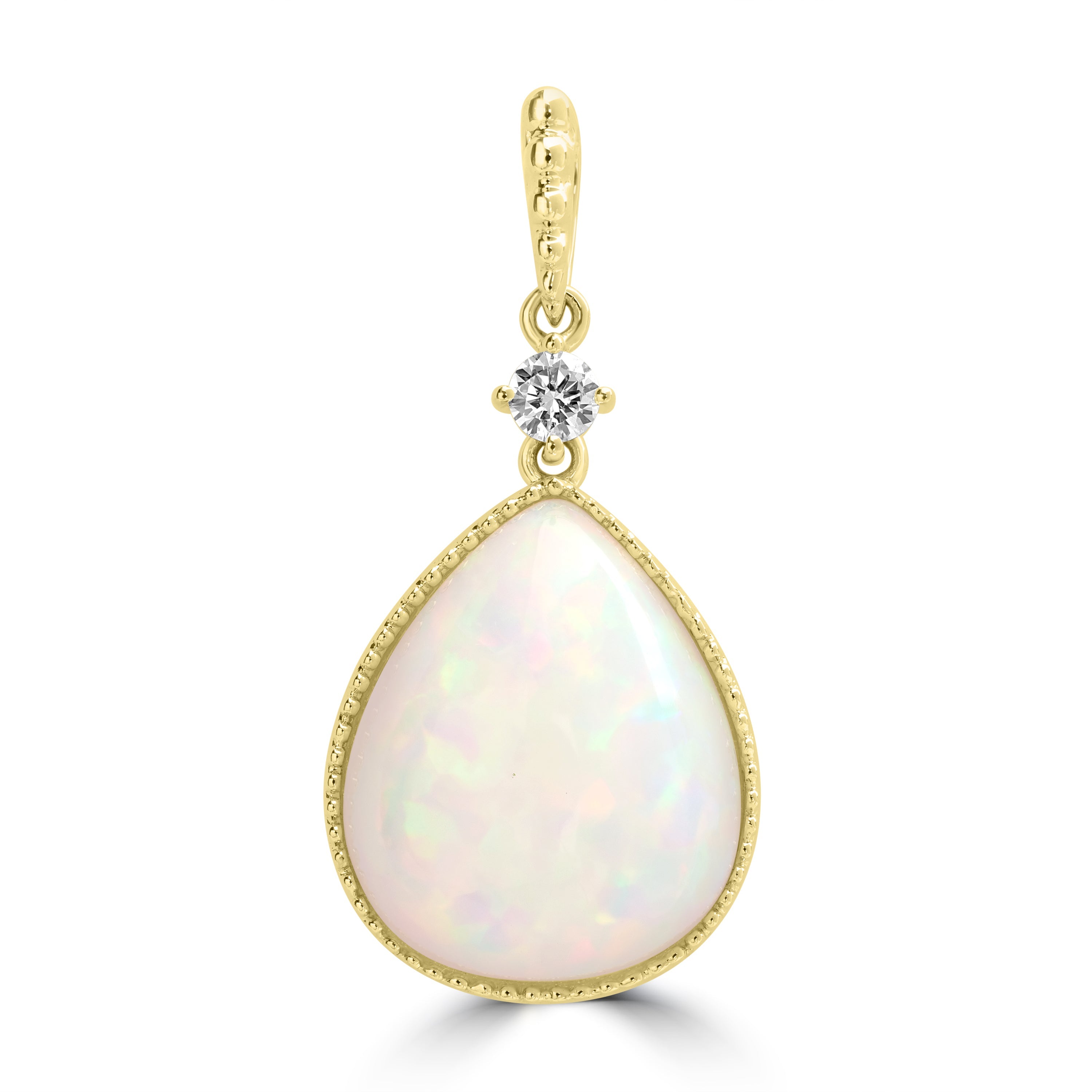 Add a touch of mystery and glitz to your personality with this artistically designed 18K yellow gold pendant. Featuring a high-class design that is set with pear-cut Opal and round Diamonds, this beautiful pendant will spell out your fashion sense. Wear it to up your jewelry game!