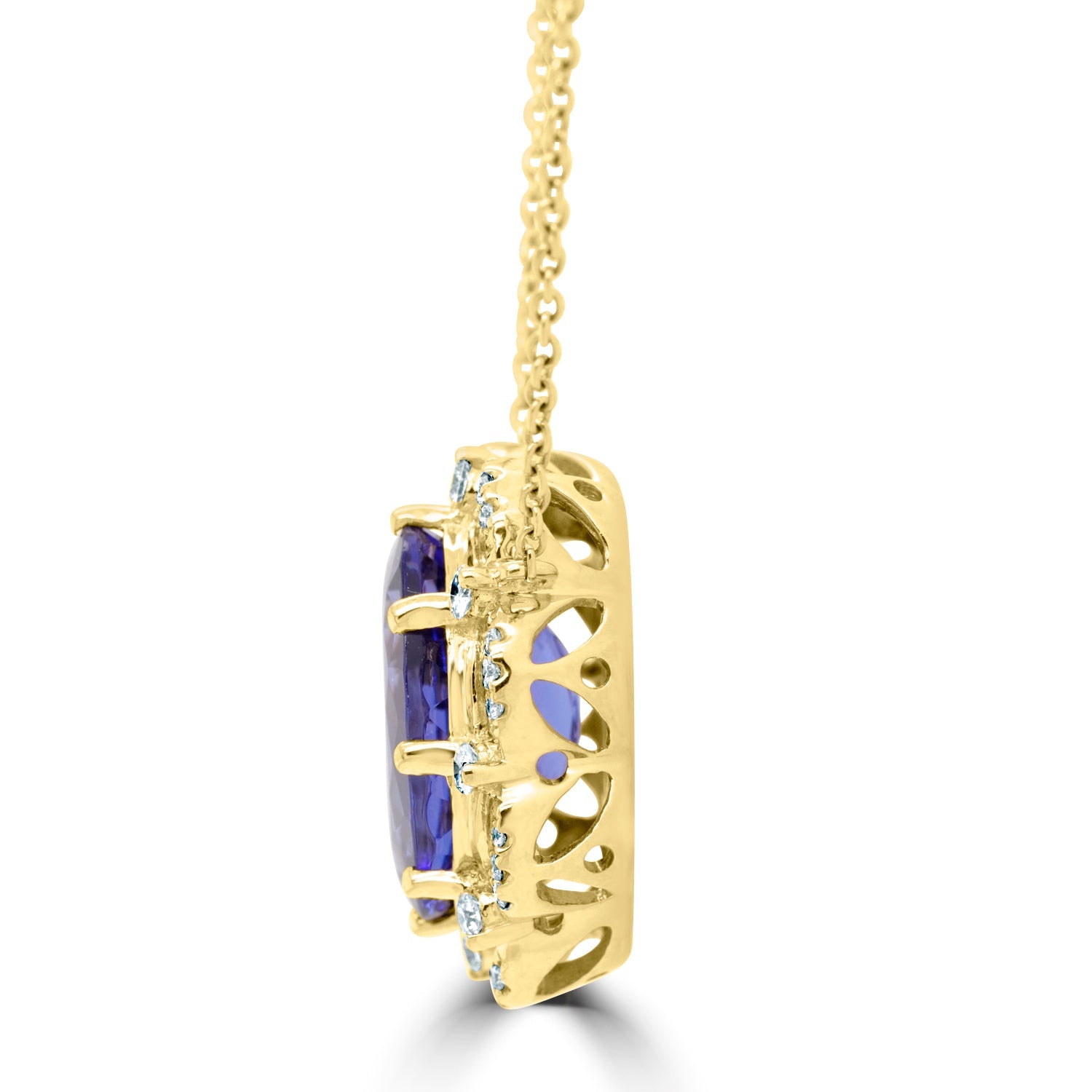 6.61Ct Tanzanite Necklace With 0.57Tct Diamonds Set In 14K Yellow Gold