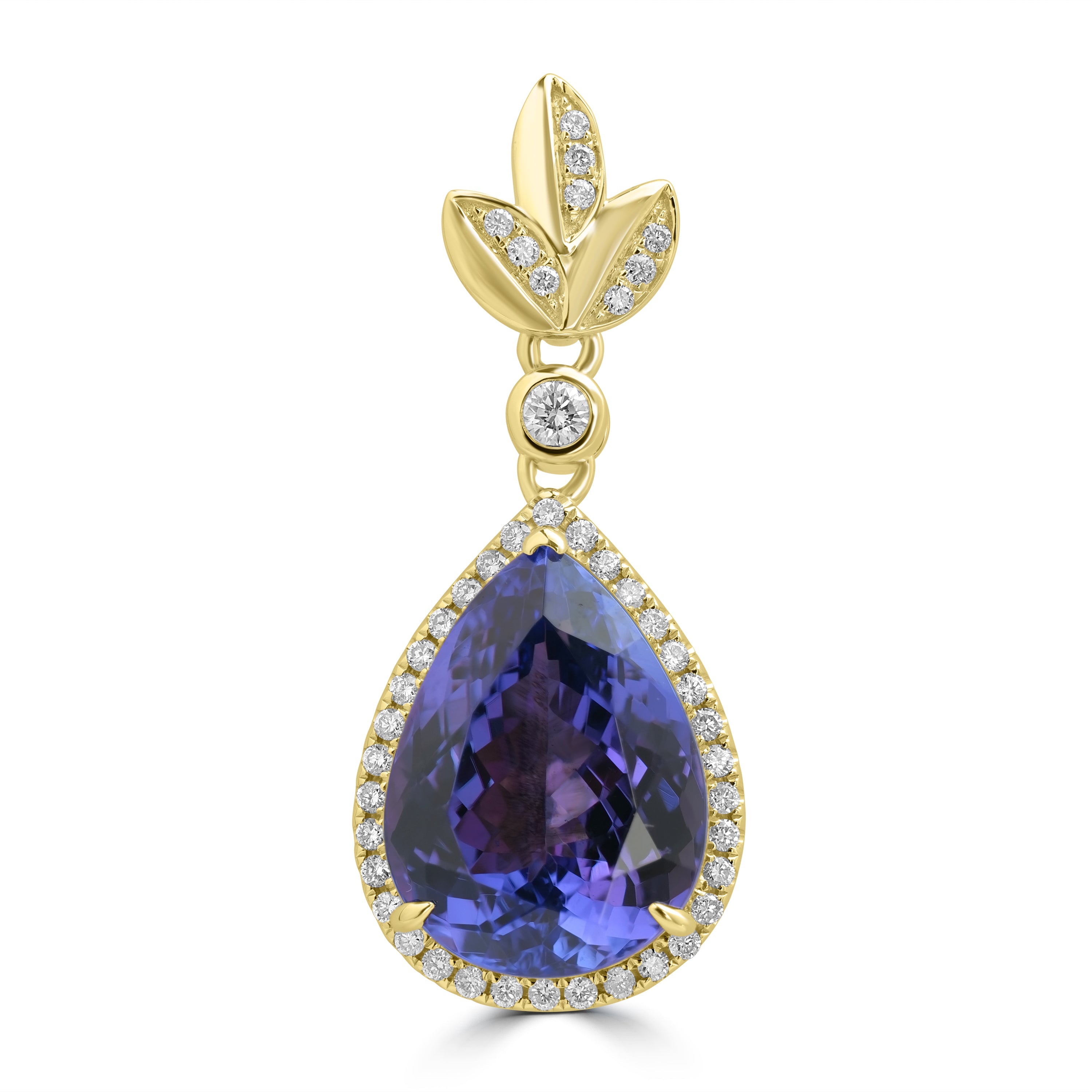 Crafted with exquisite artistry, this dazzling 18K yellow gold pendant features a world-class design. The pear-cut Tanzanite and round Diamonds create a harmonious and stunning piece that exudes a distinct appeal. Elevate your style with this exquisite pendant!