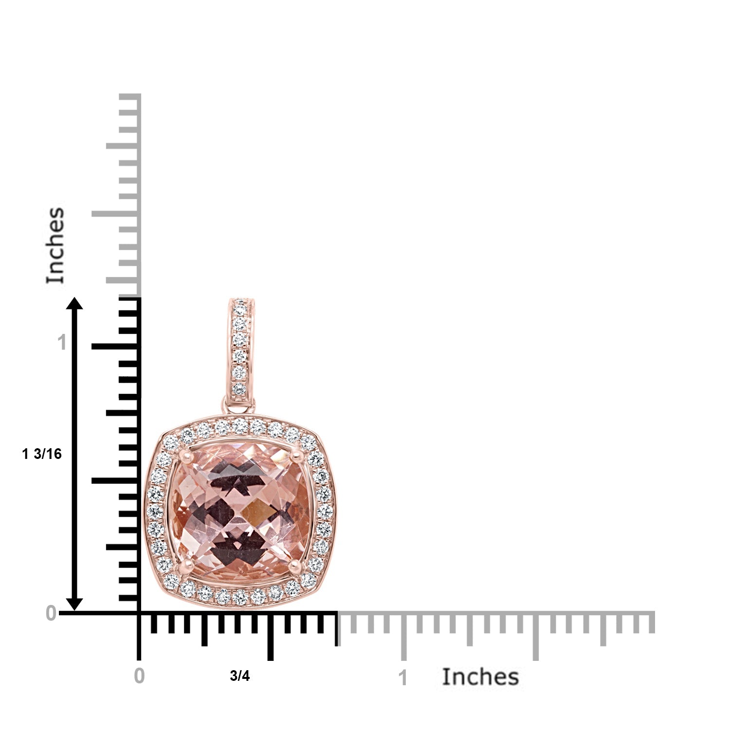 Designed with a shimmering cushion cut Morganite, this enchanting pendant is crafted with 14K rose gold for an effortless finish. Surrounded by breathtaking round cut Diamonds, this exquisite pendant upgrades your style in a flash.