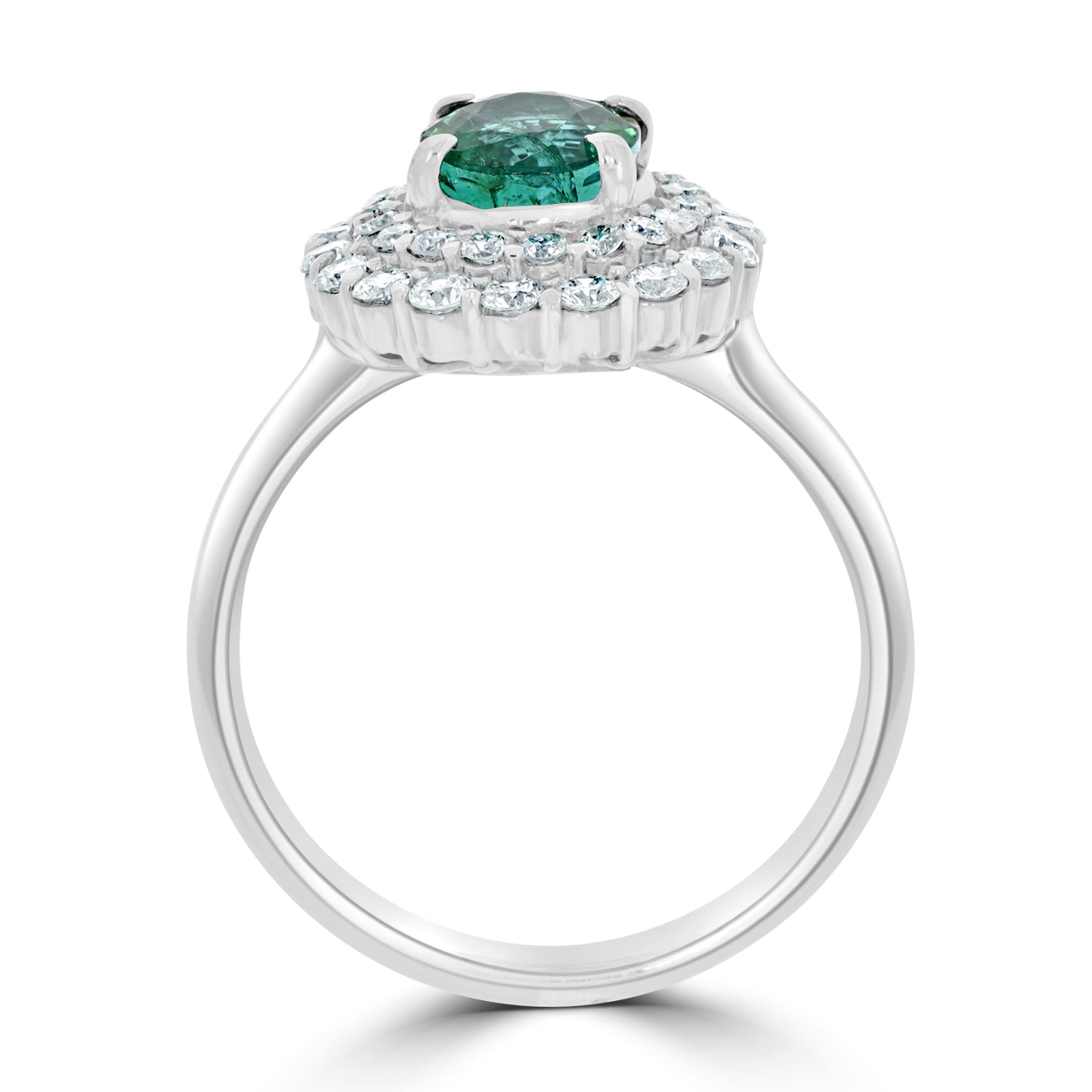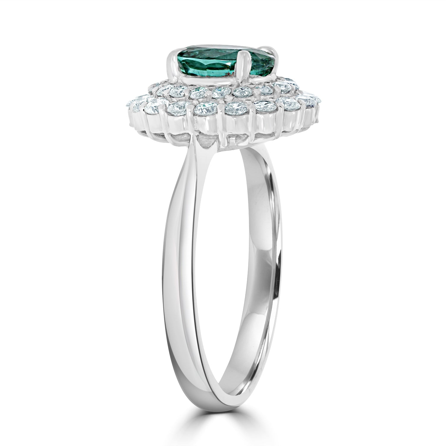 Designed With Platinum For An Endless Gleam, The Exquisite Craftsmanship Of This Ring Is Truly Hard To Miss. Set With A Glorious Oval Cut Paraiba, This Brilliant Ring Is Bordered By Glittering Round Cut Diamonds That Add Glamour, Giving Your Ensemble A Dazzling Finish.