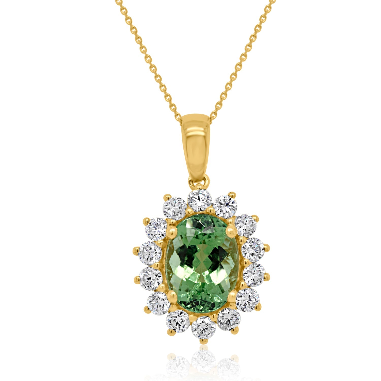 Embellished With A Breath-taking Oval Cut Paraiba At The Center, This Delightful Pendant Is Surrounded By Charming Round Cut Diamonds Which Give It A Dash Of Glamour. Crafted Of 18k Yellow Gold For A Rich Finish, This Luxurious Pendant Matches The Latest Trend.