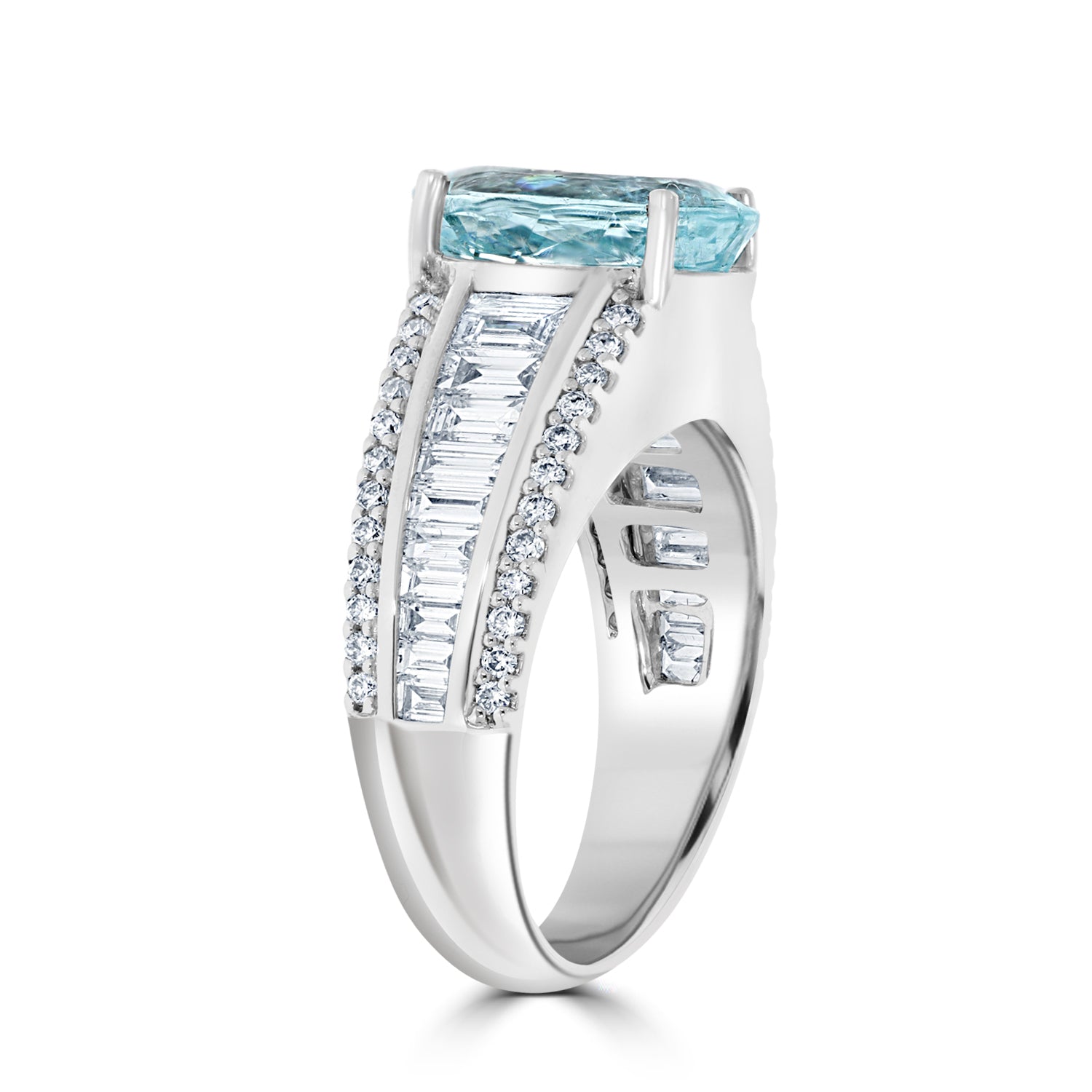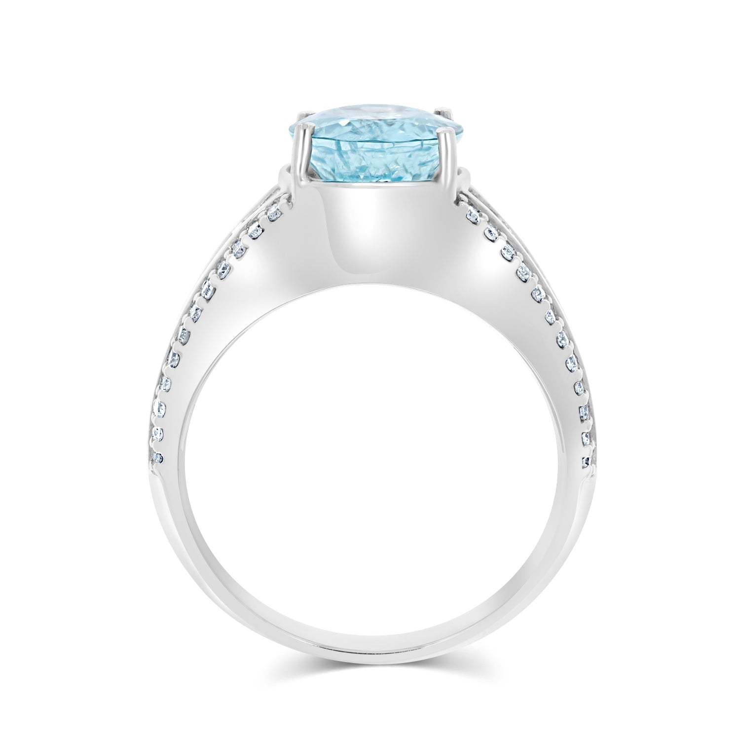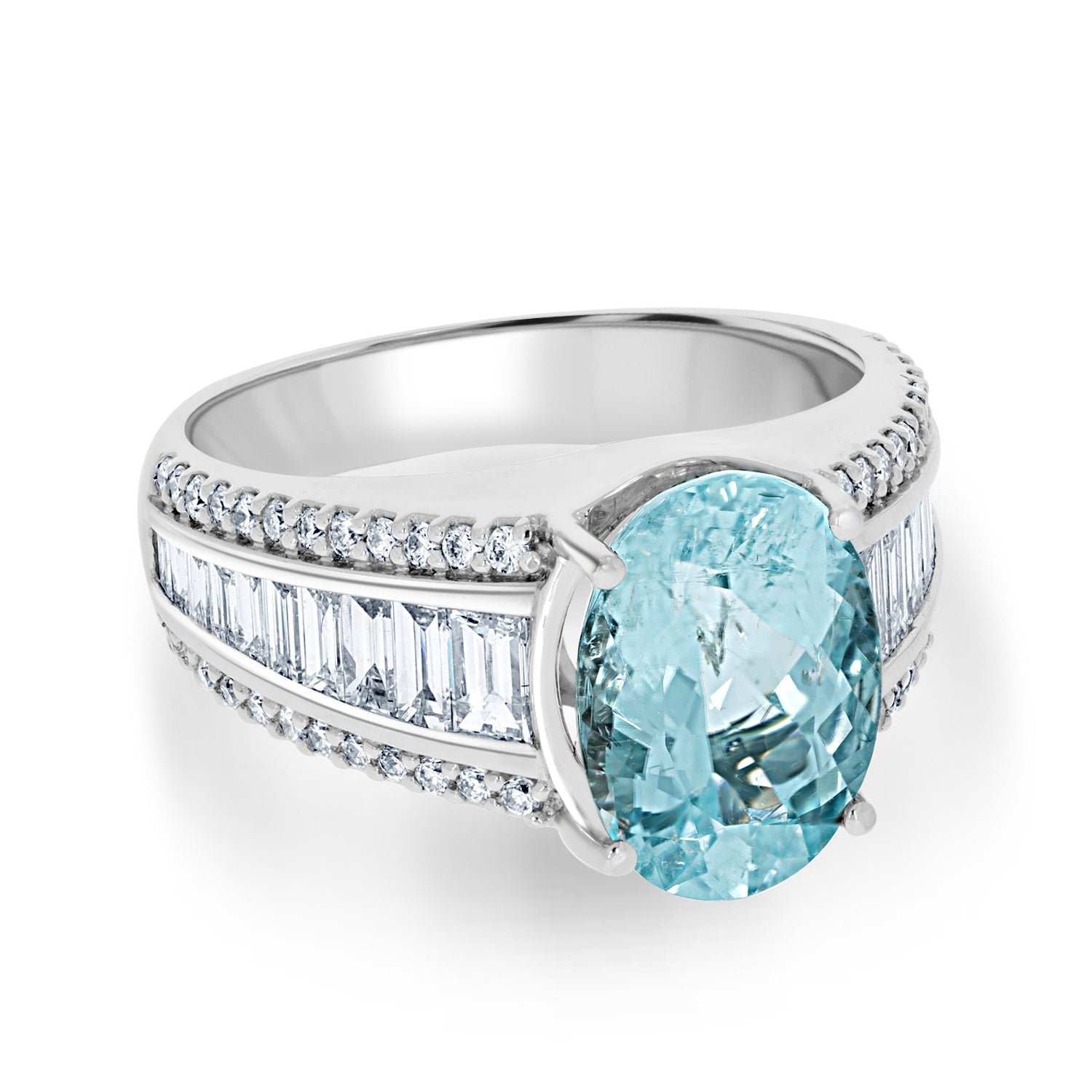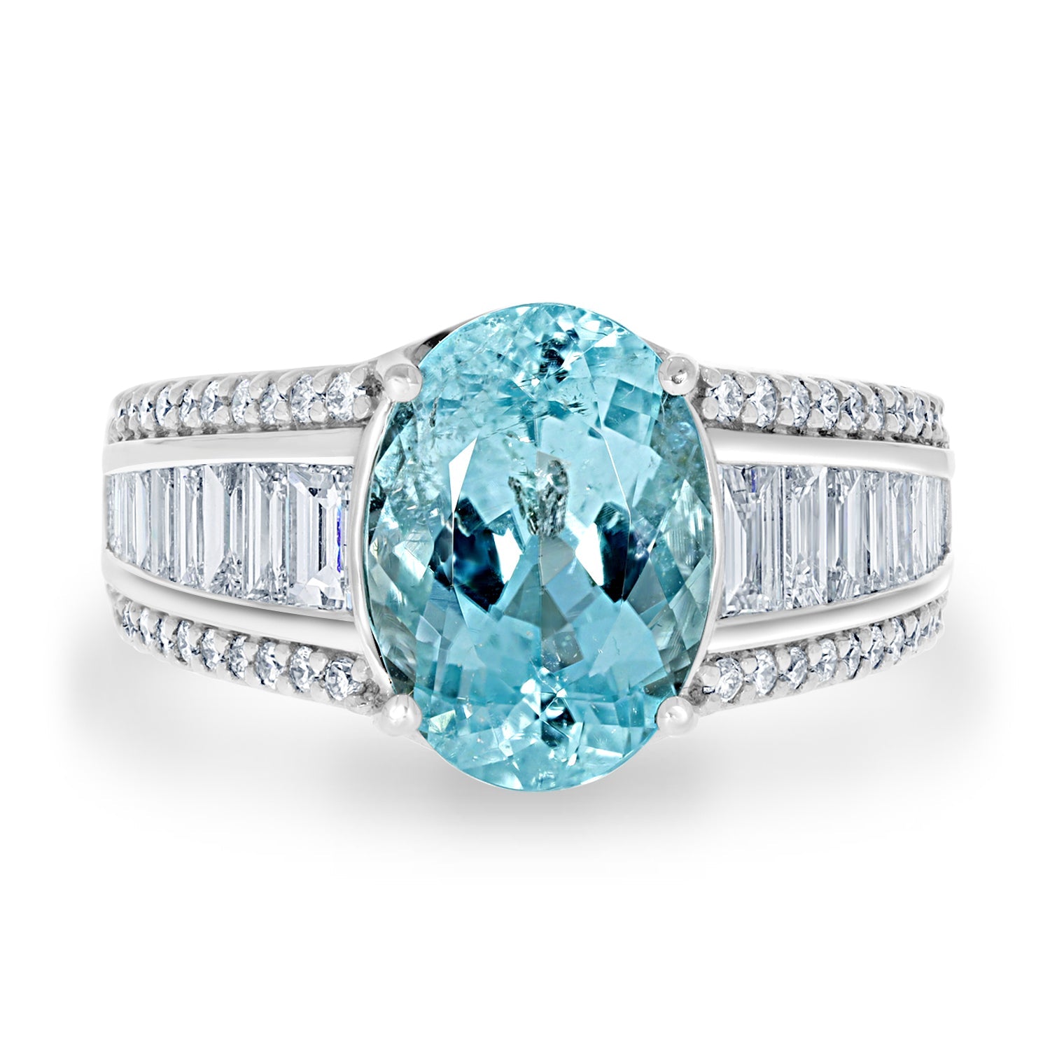 A Wonderful Blend Of Classic And Contemporary Styles, This Exceptional Ring Is Designed With 18k White Gold For A Refined Polish. Decorated With A Splendid Oval Cut Paraiba And Spectacular Round Cut Diamonds, The Glorious Sparkle Of This Jewelry Can Be Seen For Miles.