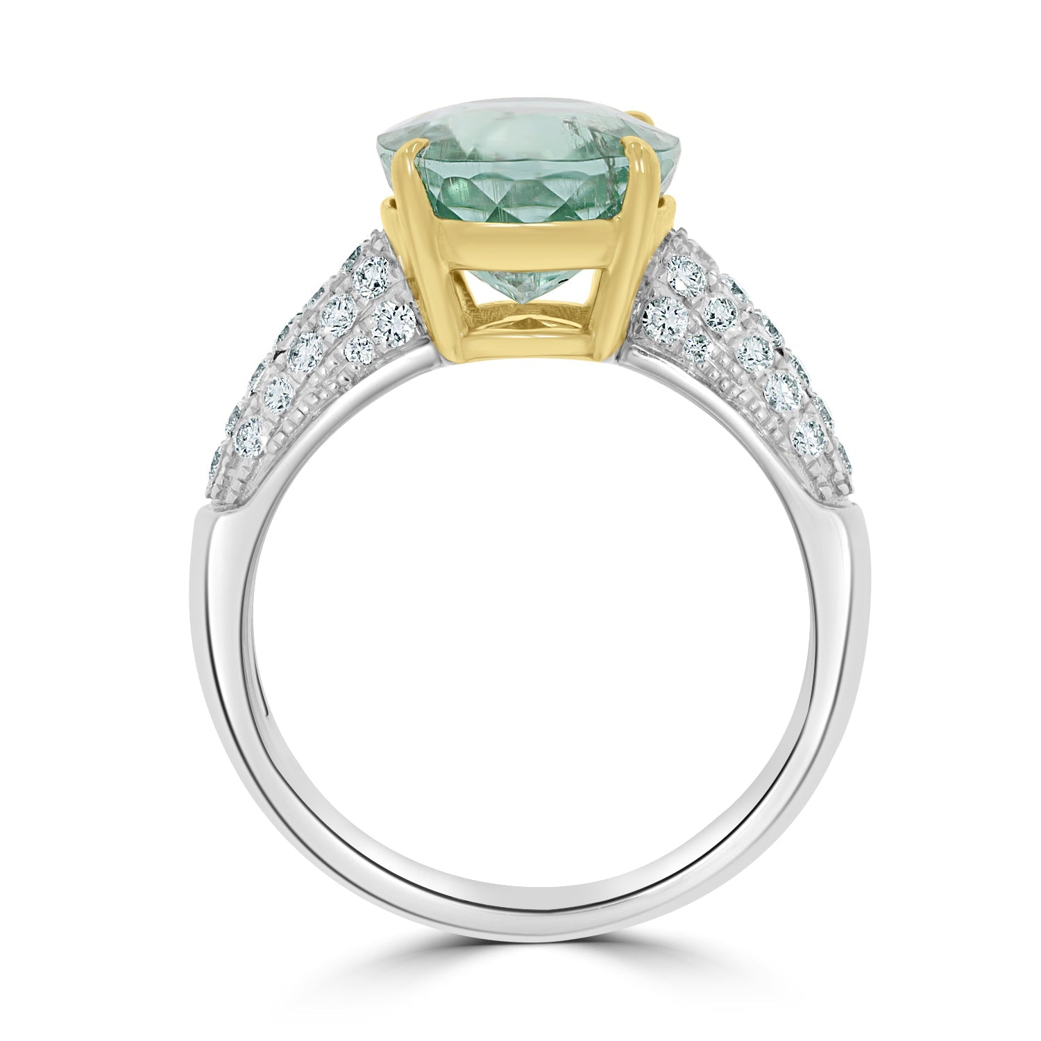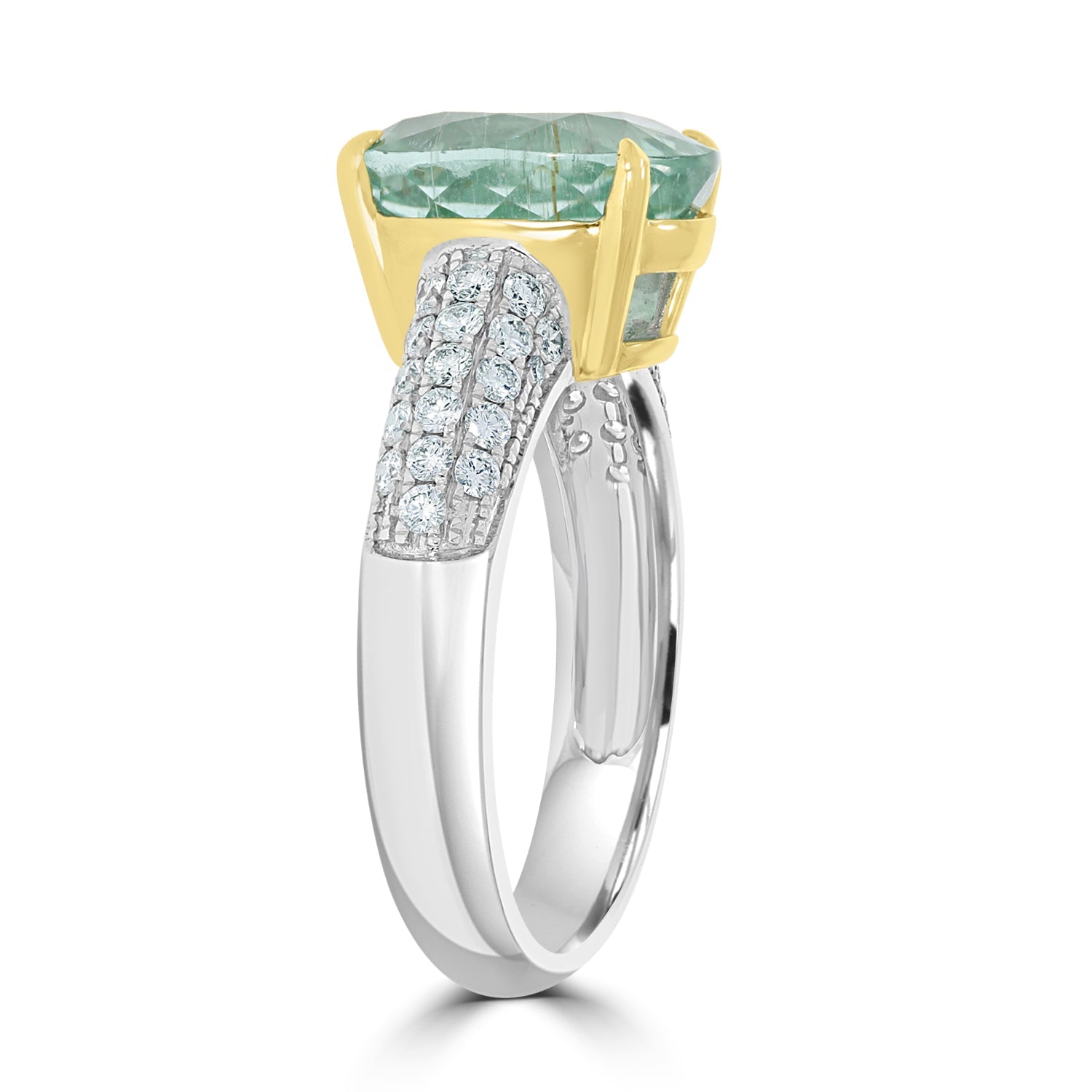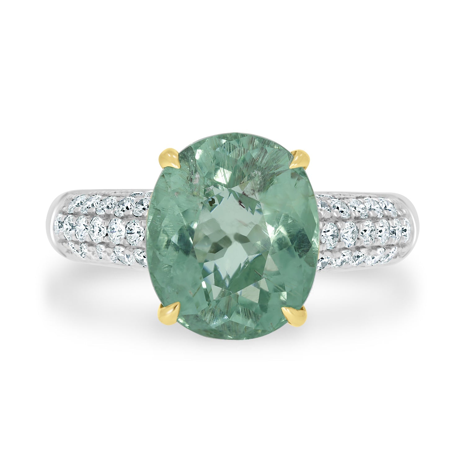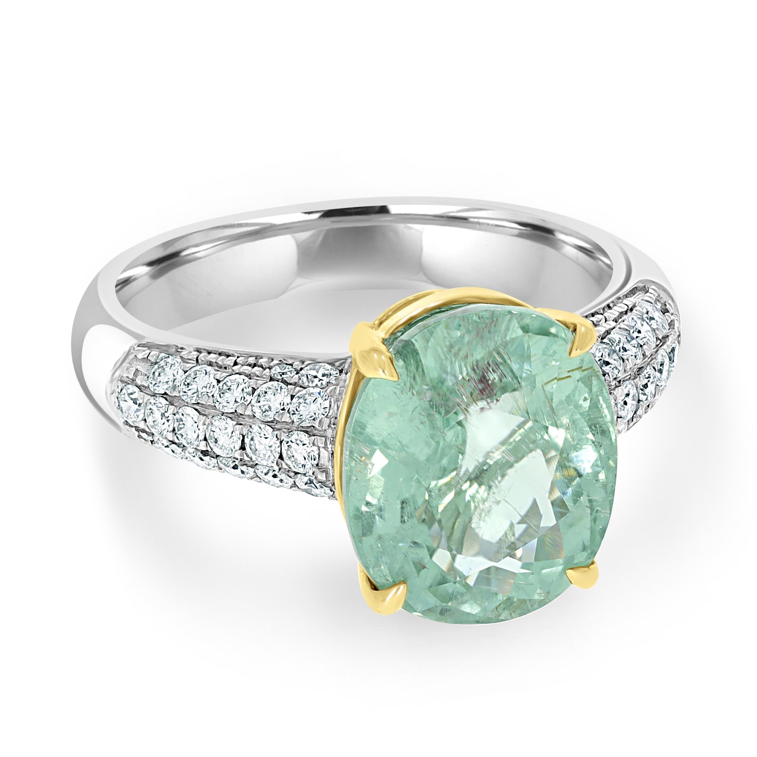 Crafted Of 18k Two Tone Gold, Wear This Brilliantly Designed Ring For Any Event With Confidence. Set With A Marvelous Oval Cut Paraiba, The Sparkle Of This Gorgeous Ring Is Elevated By The Radiance Of The Round Cut Diamonds That Surround It, Creating A Dazzling Effect.