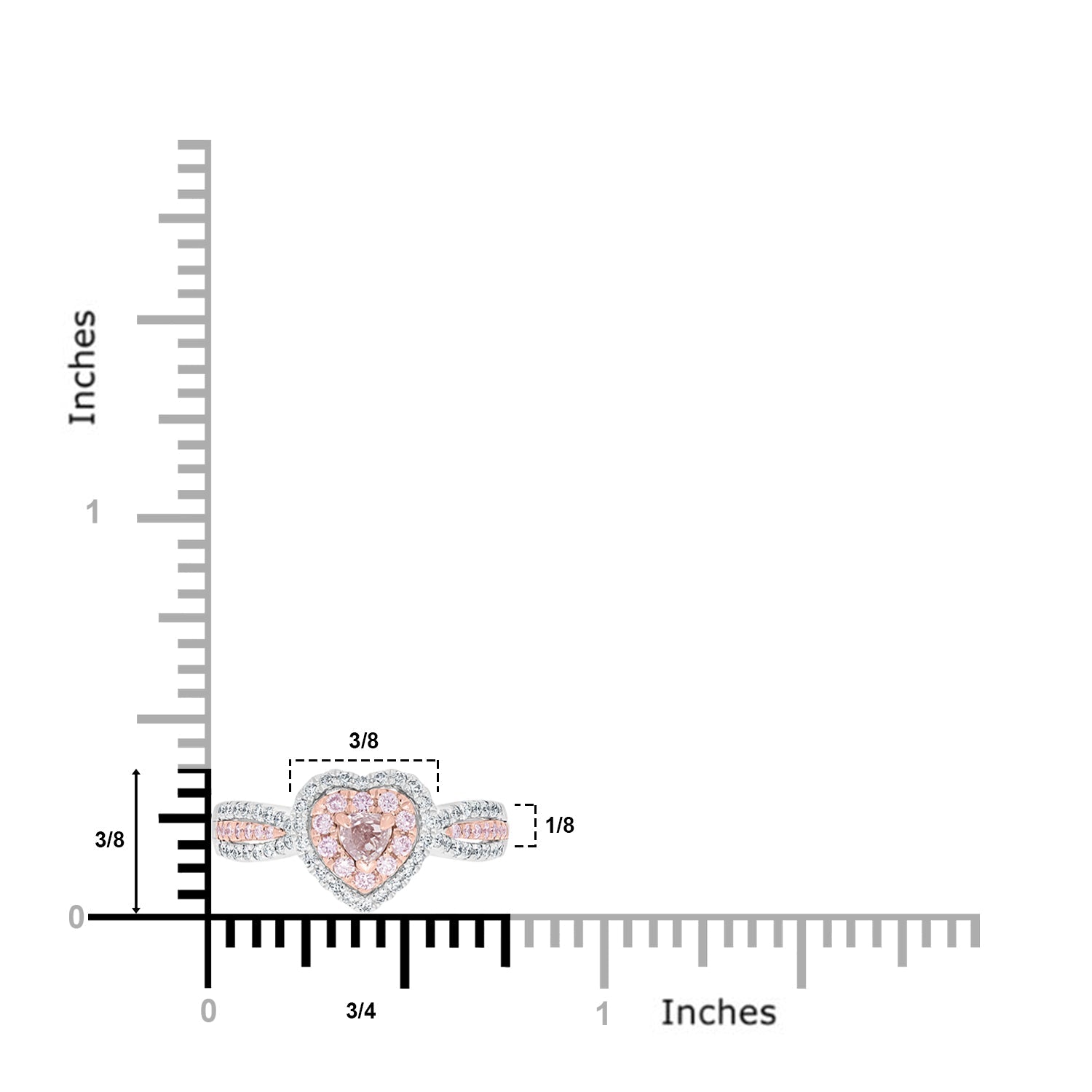 Set with a stunning heart cut Pink Diamond that is hard to miss, this gorgeous ring is designed with lustrous 14K two tone gold. Bordered by beautiful round cut Diamonds, this incredible ring nails the perfect look every time.