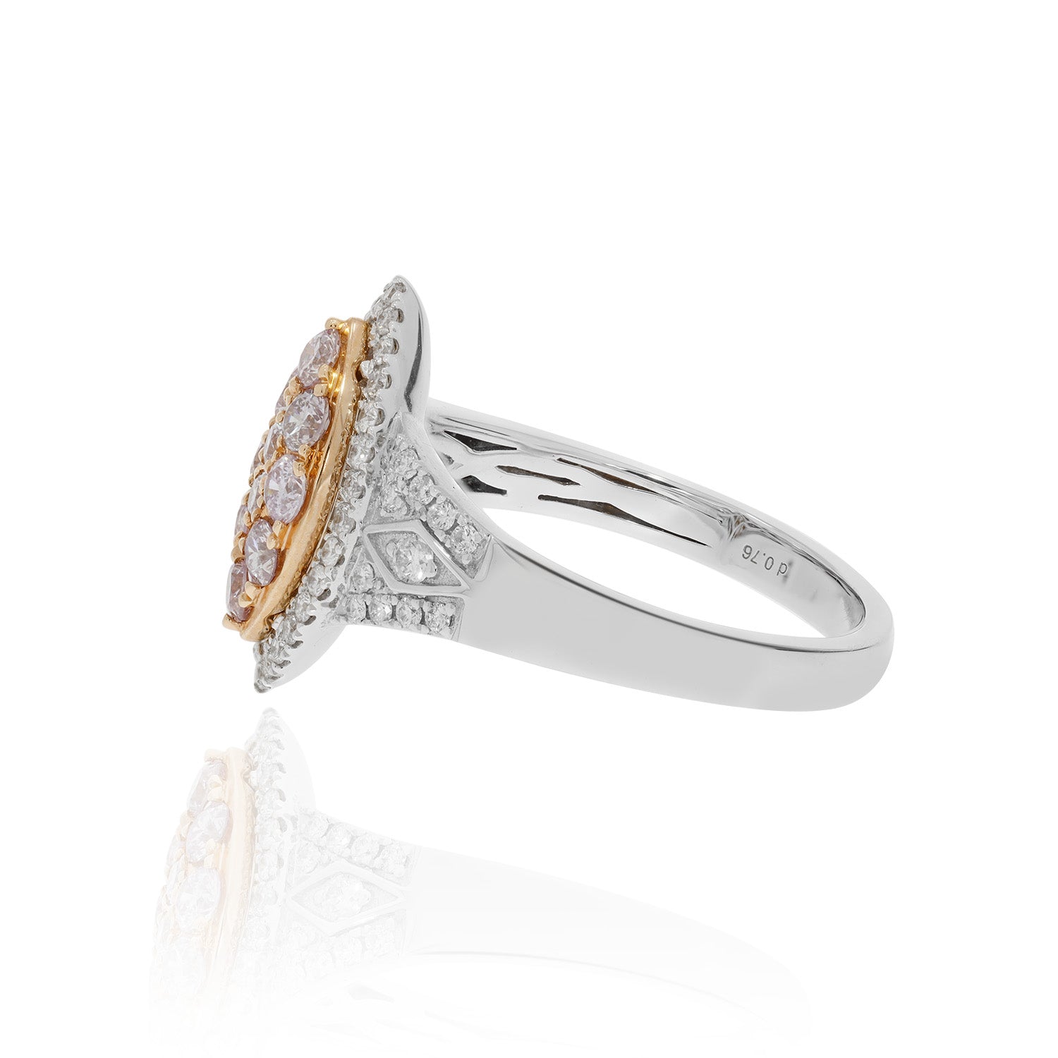Embellished With A Radiant Round Cut Diamond That Instantly Catches The Eye, The Brilliance Of This Ring Is Highlighted By The Shimmer Of The Round Cut Diamonds Encircling It. Designed With 18k Two-tone Gold For A Rich Polish, This Dazzling Ring Dresses You Up With Elegance For Any Occasion.