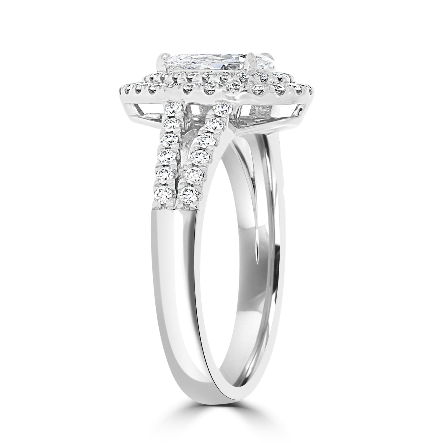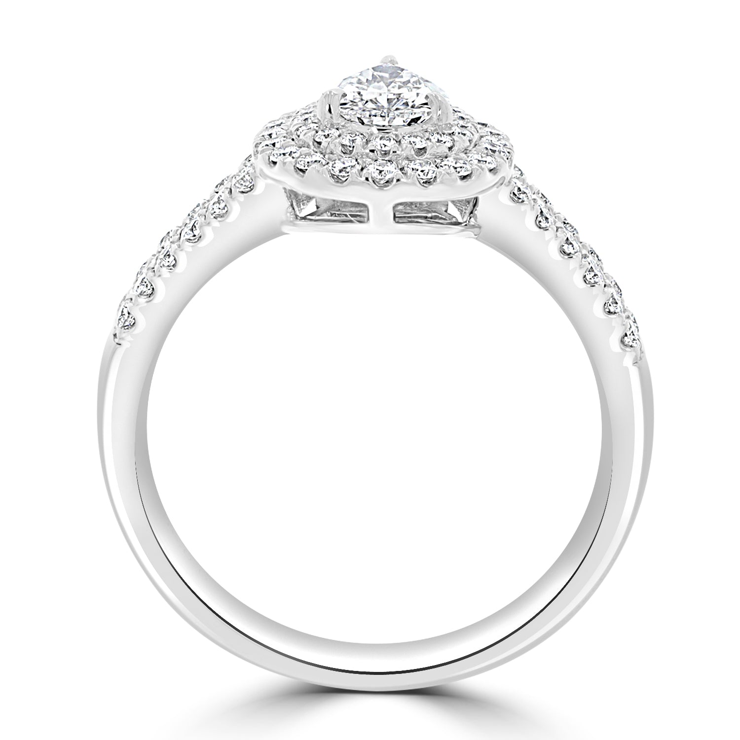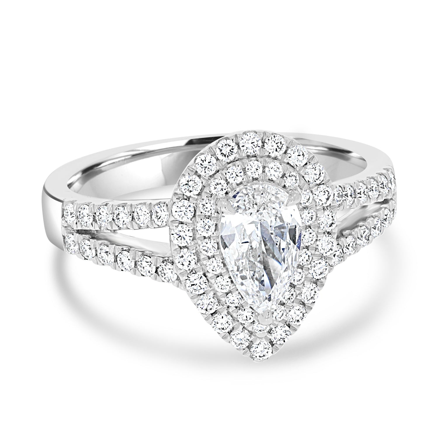 The stunning beauty of this platinum 950 ring will work with every outfit. Set with a pear-cut Diamond and round Diamonds that add a truly luxurious finish to this piece.