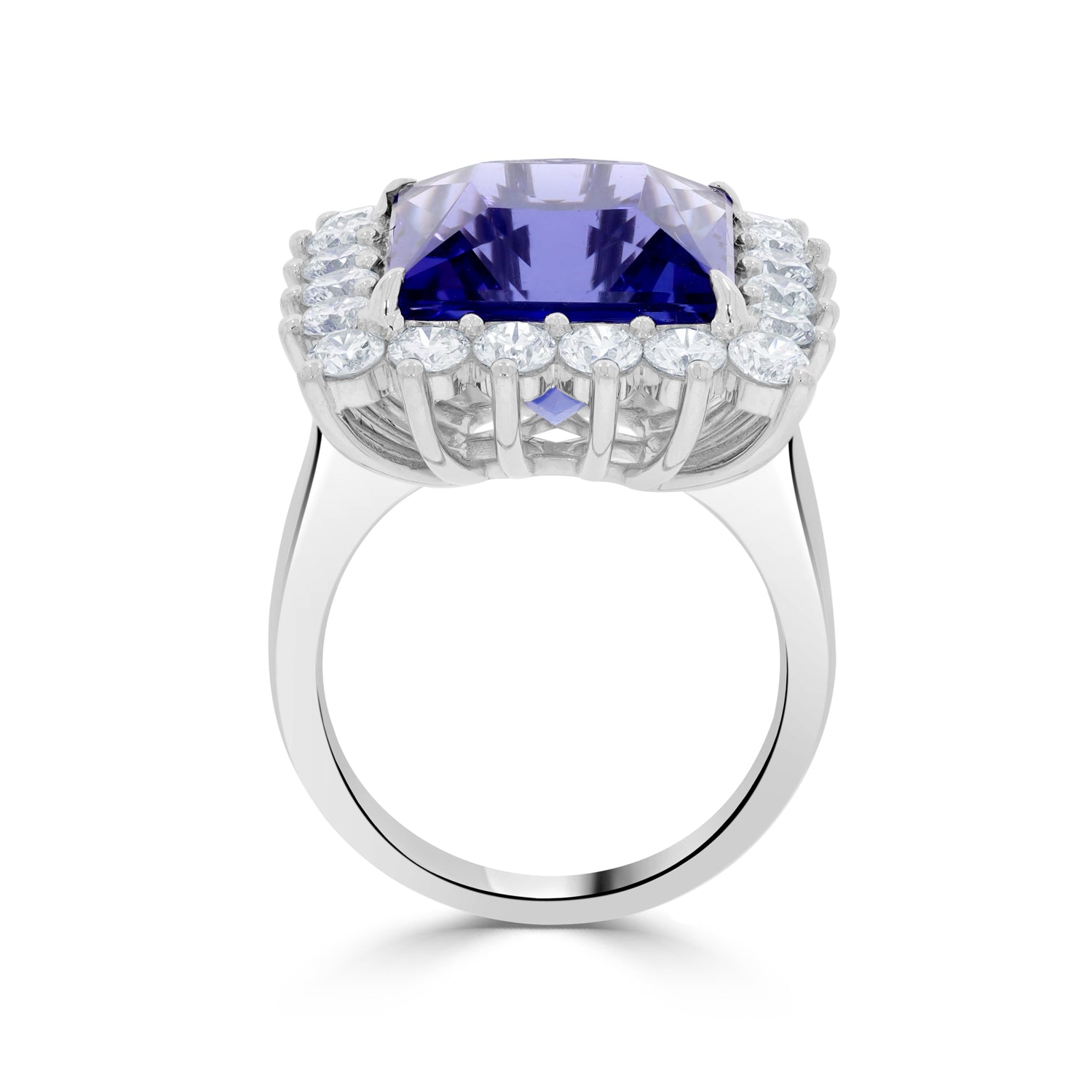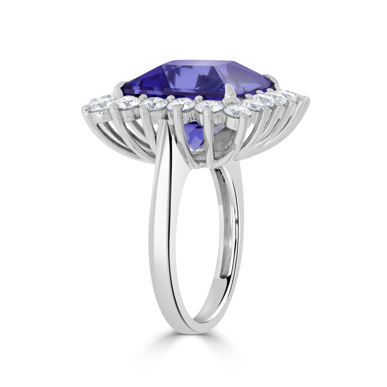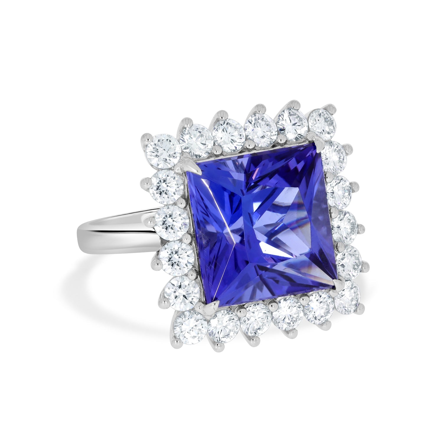 Designed with a brilliant square cut certified Vivid Tanzanite, this exquisite ring is designed in platinum for a rich look. Encircled by gorgeous round cut Colorless Flawless Diamonds, their shimmering finish gives your ensemble a touch of glamour.