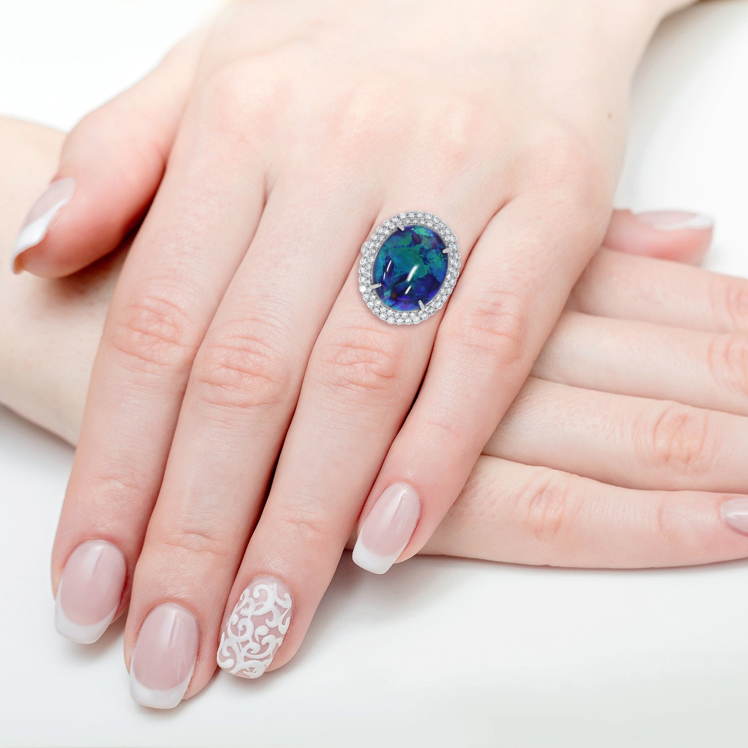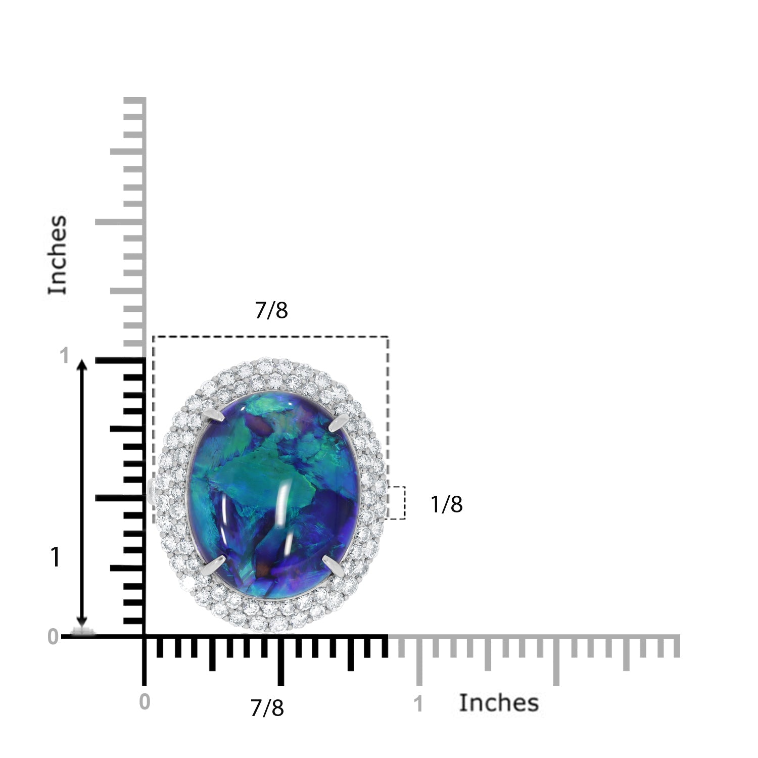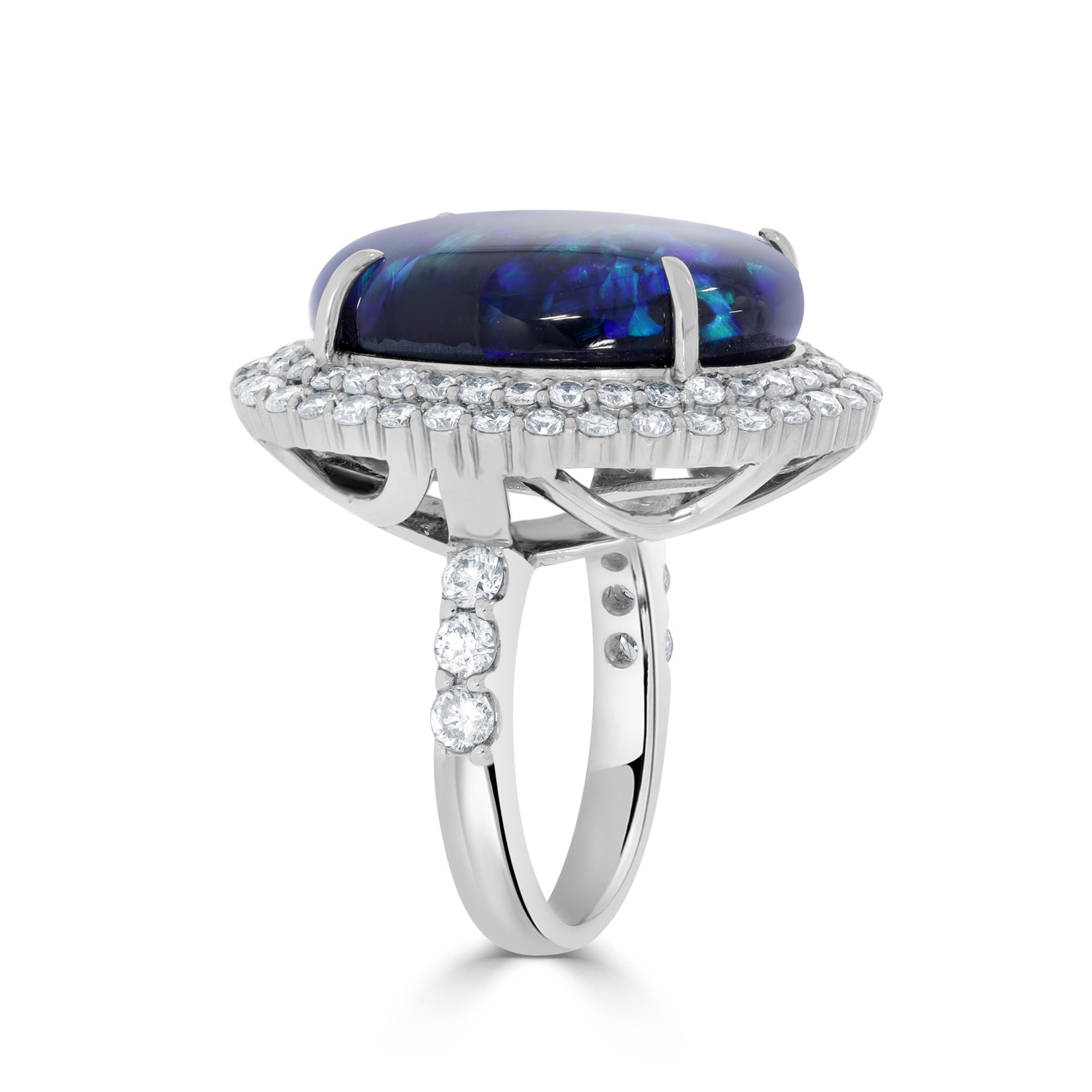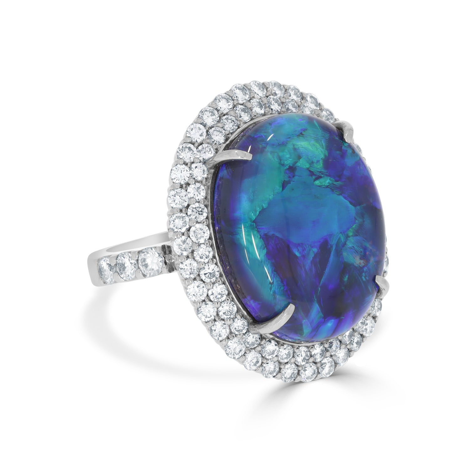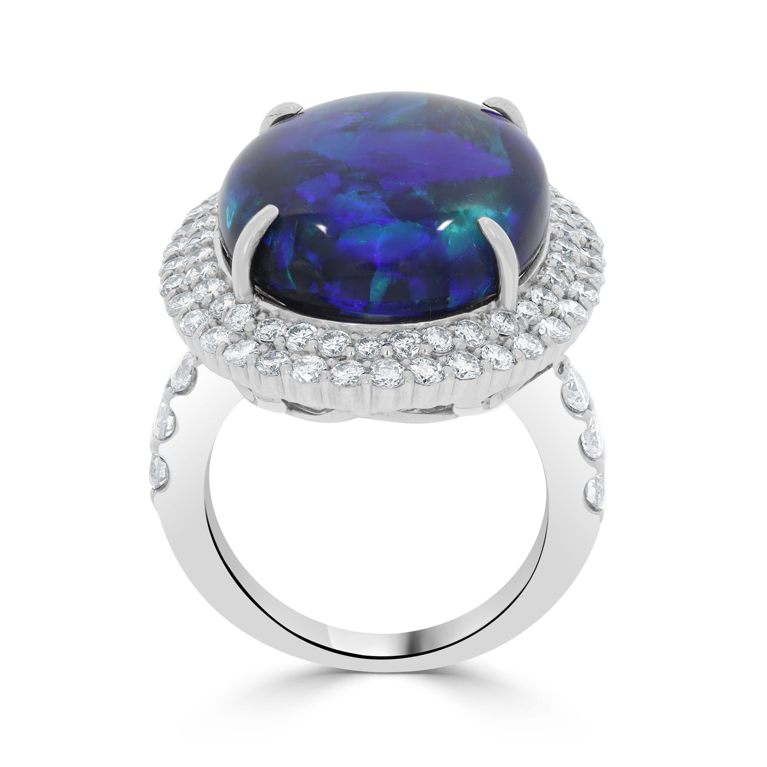 Crafted with the best quality platinum, this ring is bejeweled with an oval cut Australian Black opal and round diamonds. Its unique design will add romance to your life and its color and fashion will retain its new look for a long time.